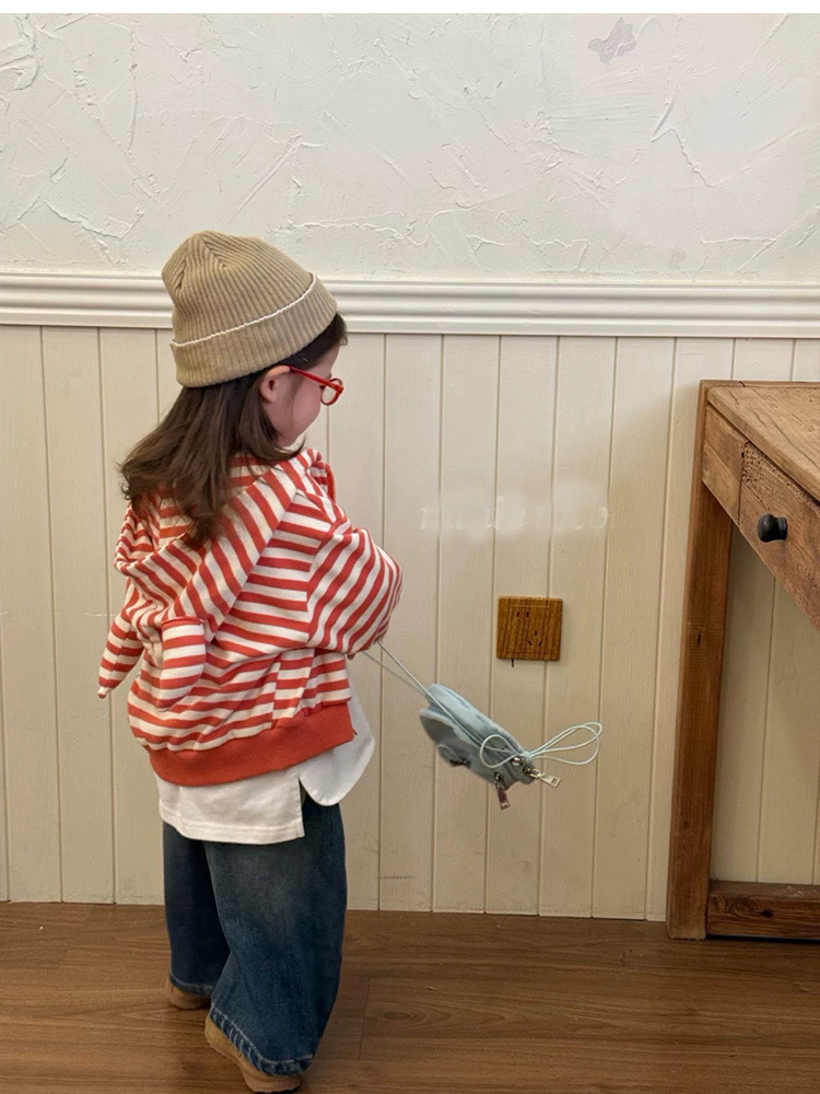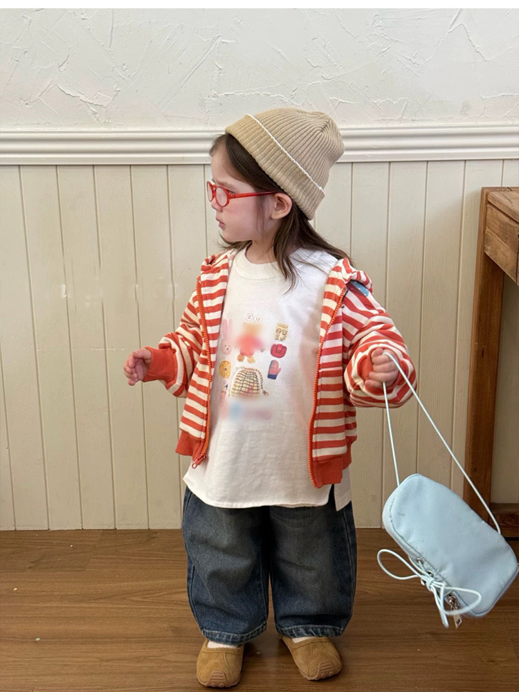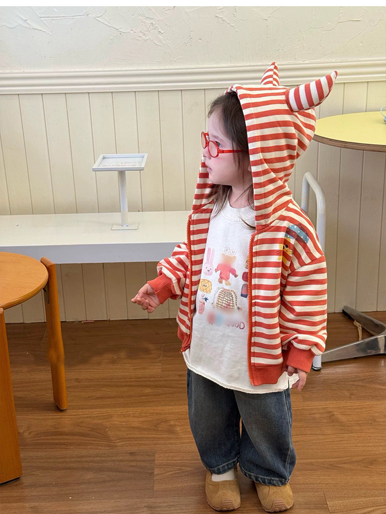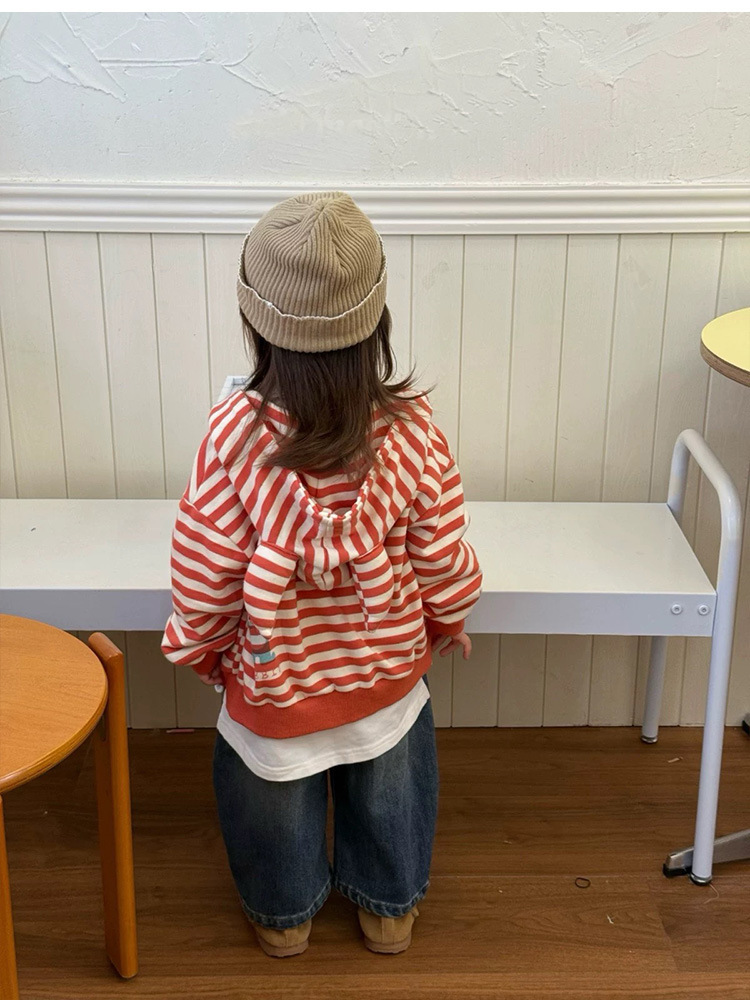 2025 새로운 한국 스타일 소녀 후드 자켓 가을 어린이 줄무늬 어린이 짧은 캐주얼 스타일 지퍼 카디건