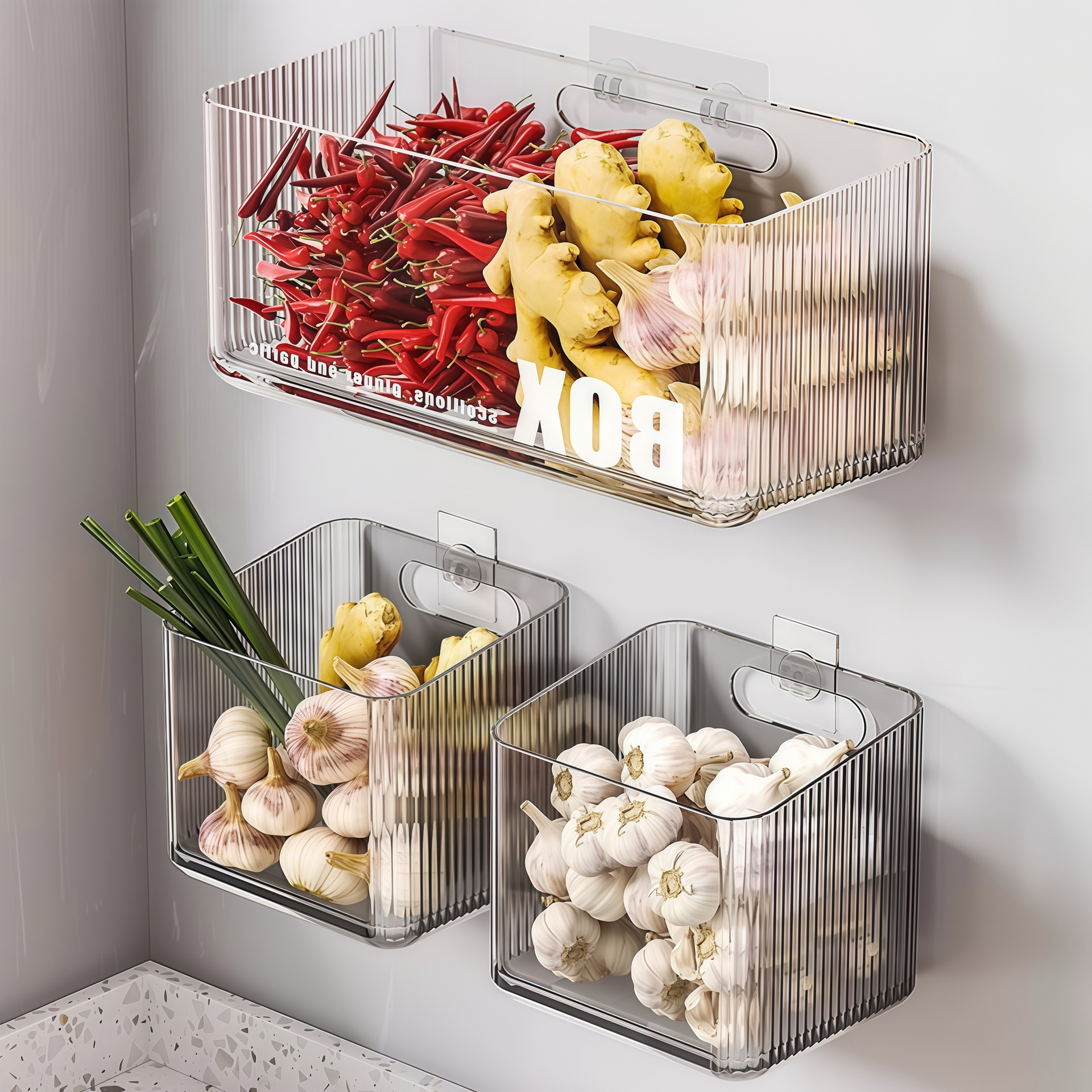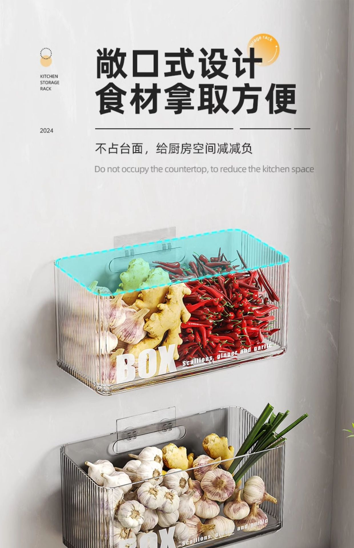 주방 양파, 생강, 마늘 보관함, 생강 마늘 벽걸이형 펀치 없는 다기능 보관함 보관 바구니 걸이 바구니 유물스토어 가기