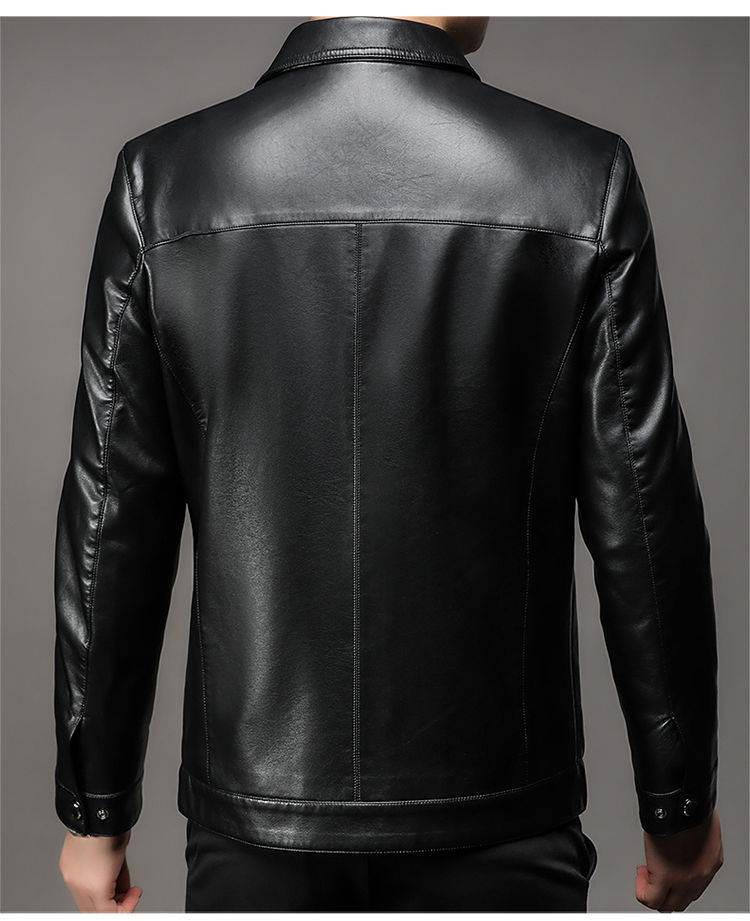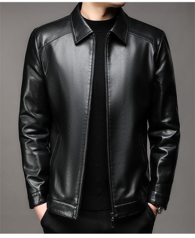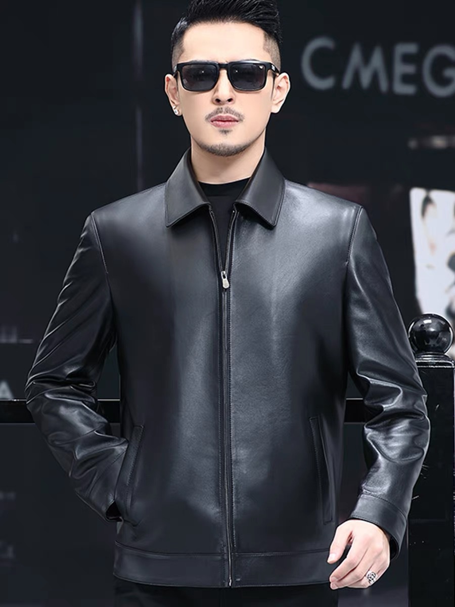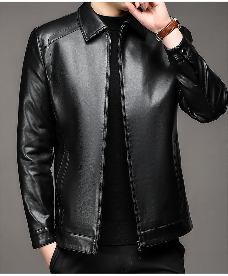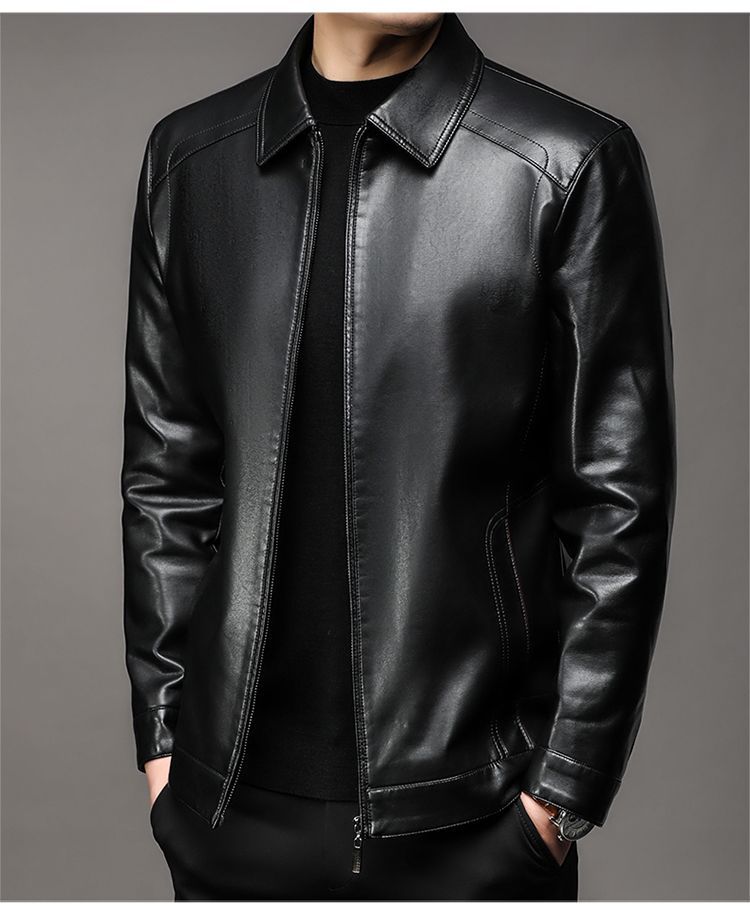 새로운 남성 가죽 코트 비즈니스 캐주얼 옷깃 봄 가을 얇은 싱글 중년 하이 엔드 가죽 자켓