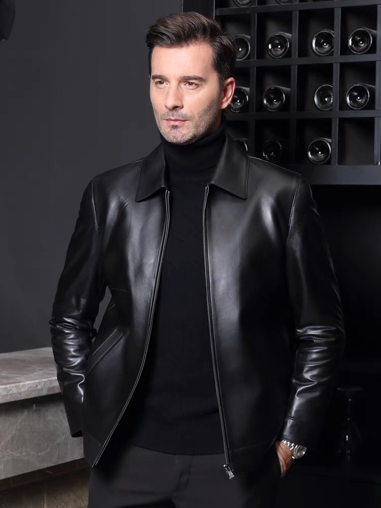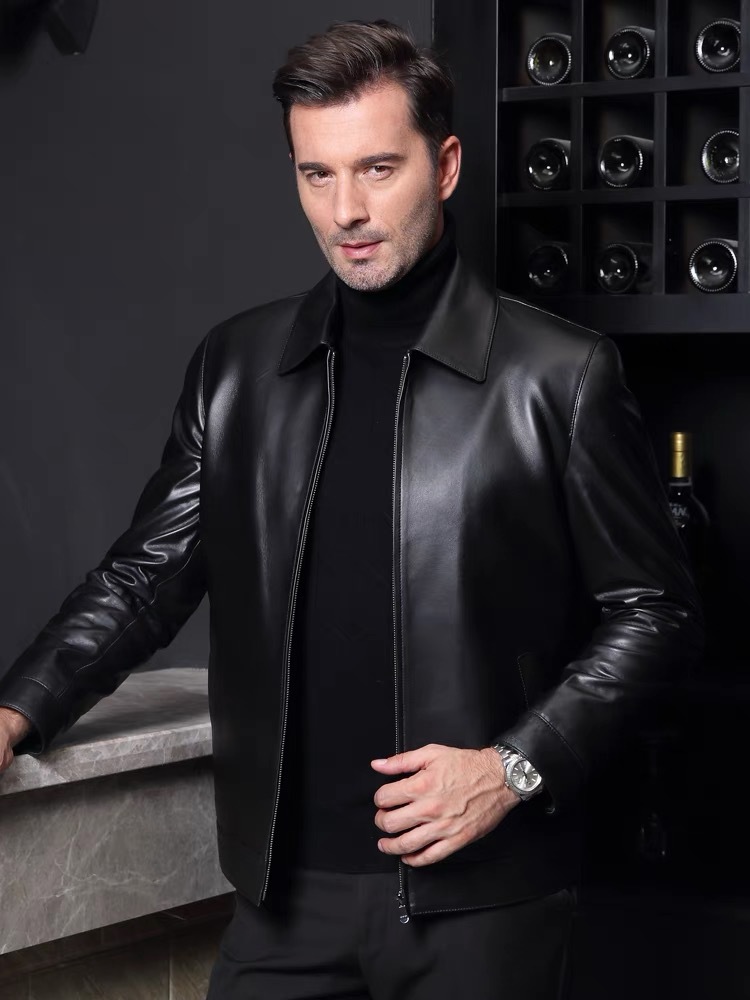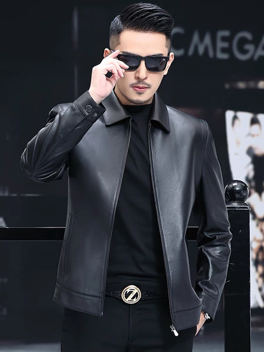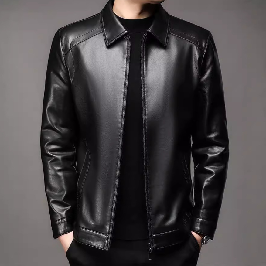 새로운 남성 가죽 코트 비즈니스 캐주얼 옷깃 봄 가을 얇은 싱글 중년 하이 엔드 가죽 자켓