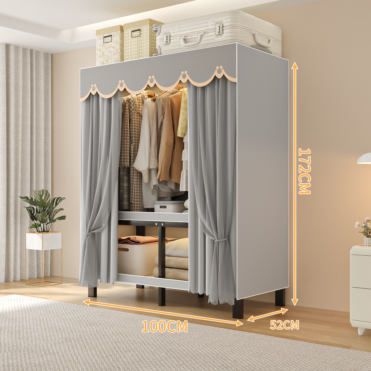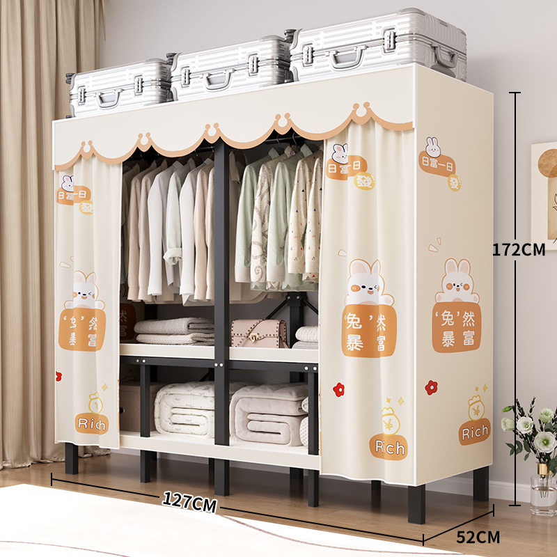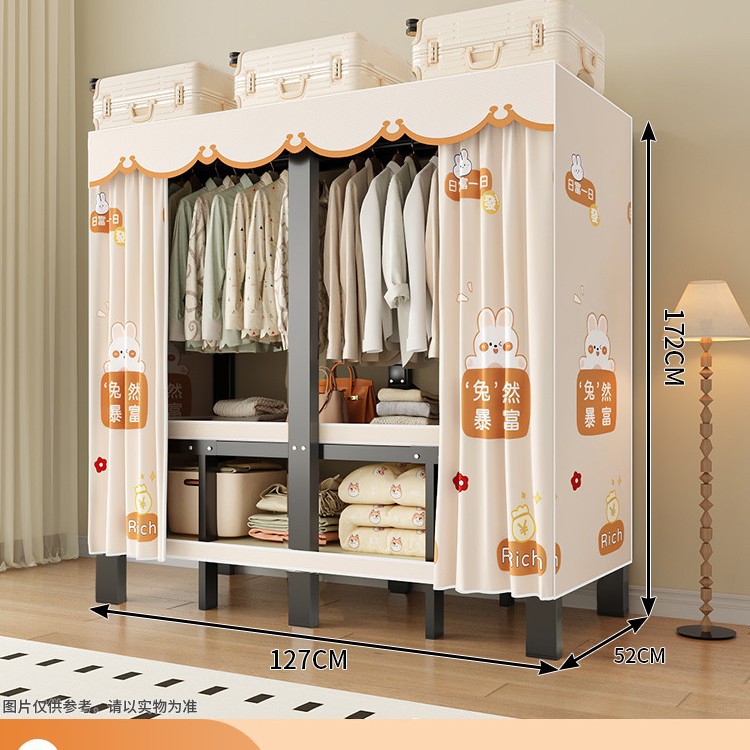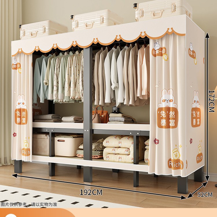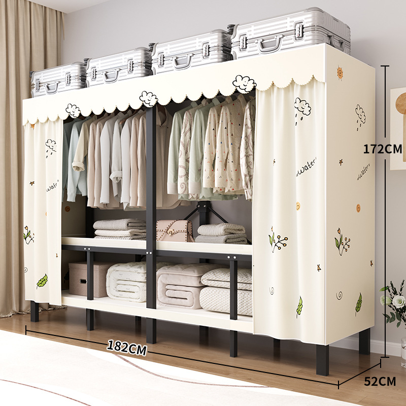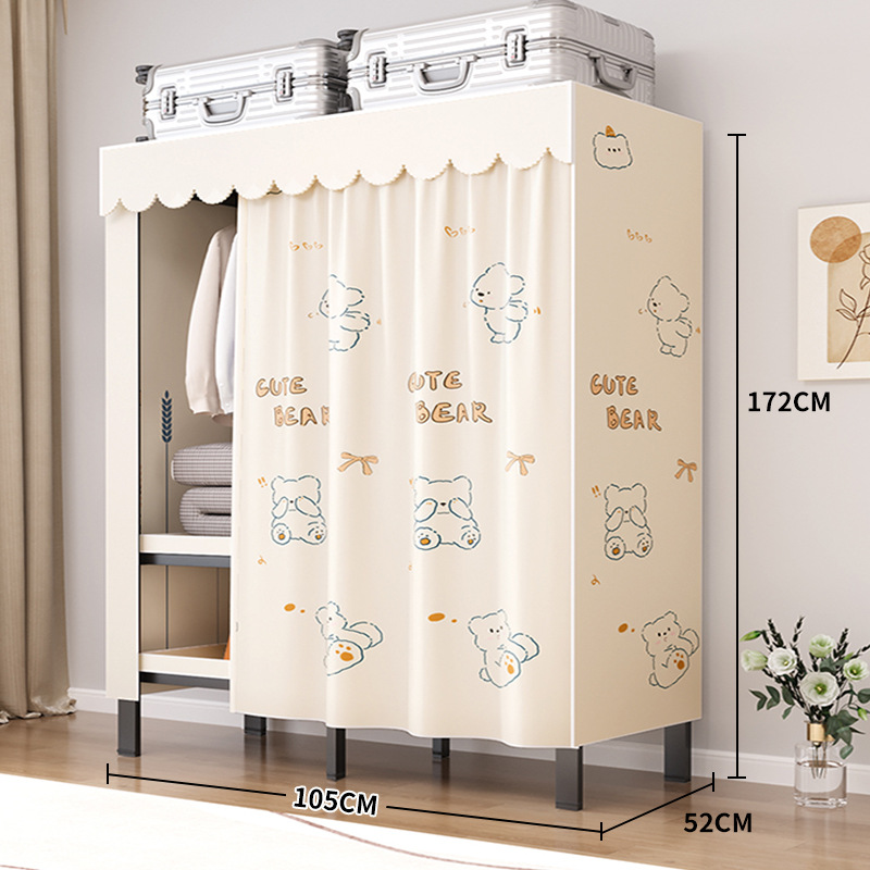 설치가 필요 없는 일체형 간편 조립 침실 가정용 천 옷장 두껍고 튼튼하며 내구성이 뛰어난 접이식 전체 강철 프레임 임대실스토어 가기