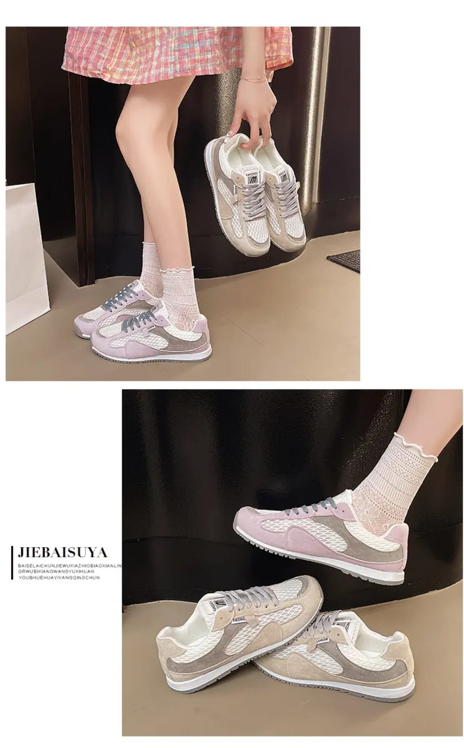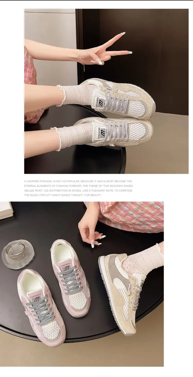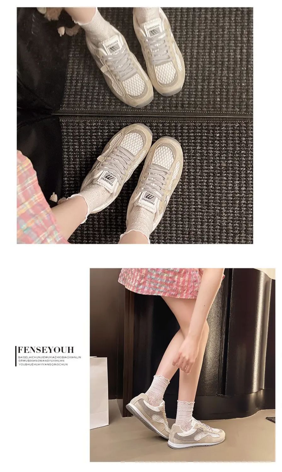 여성을위한 두꺼운 밑창 윤리 훈련 신발 2025 새로운 인기 여름 메쉬 신발 통기성 스포츠 포레스트 검프 캐주얼 경량 부드러운 밑창 흰색 신발스토어 가기