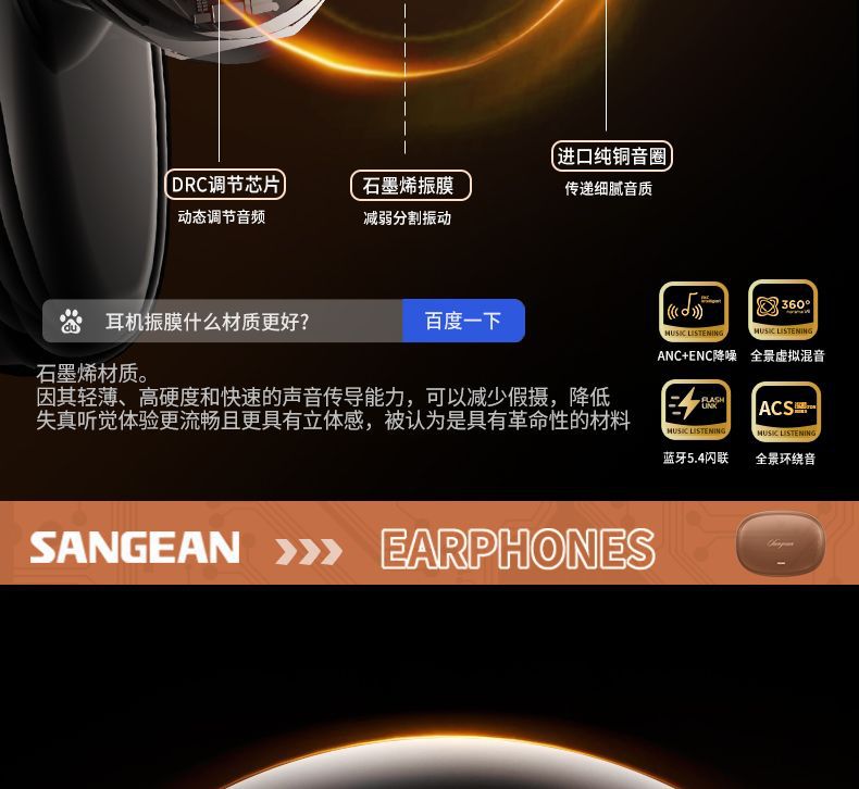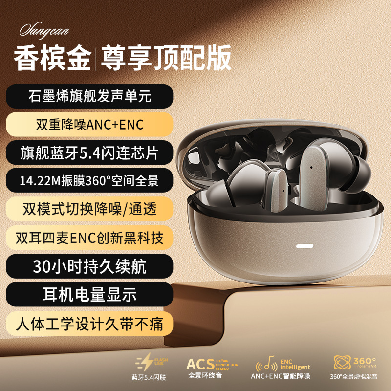 • 샴페인 골드 [ANC 능동형 소음 감소丨긴 배터리 수명] Bluetooth 5.4