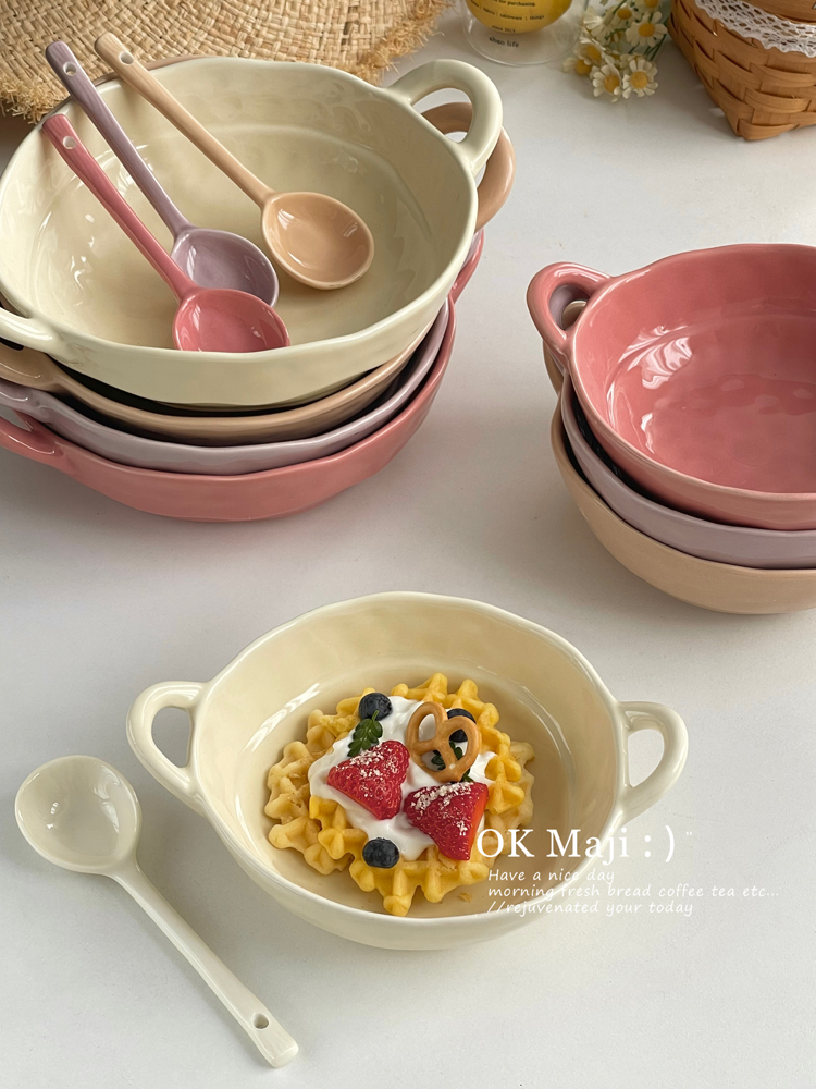 ♤ 고급스러운 양이 그릇, 가정용 요구르트 샐러드 과일 그릇, 도자기 식기 접시, 국그릇, 달팽이 국수