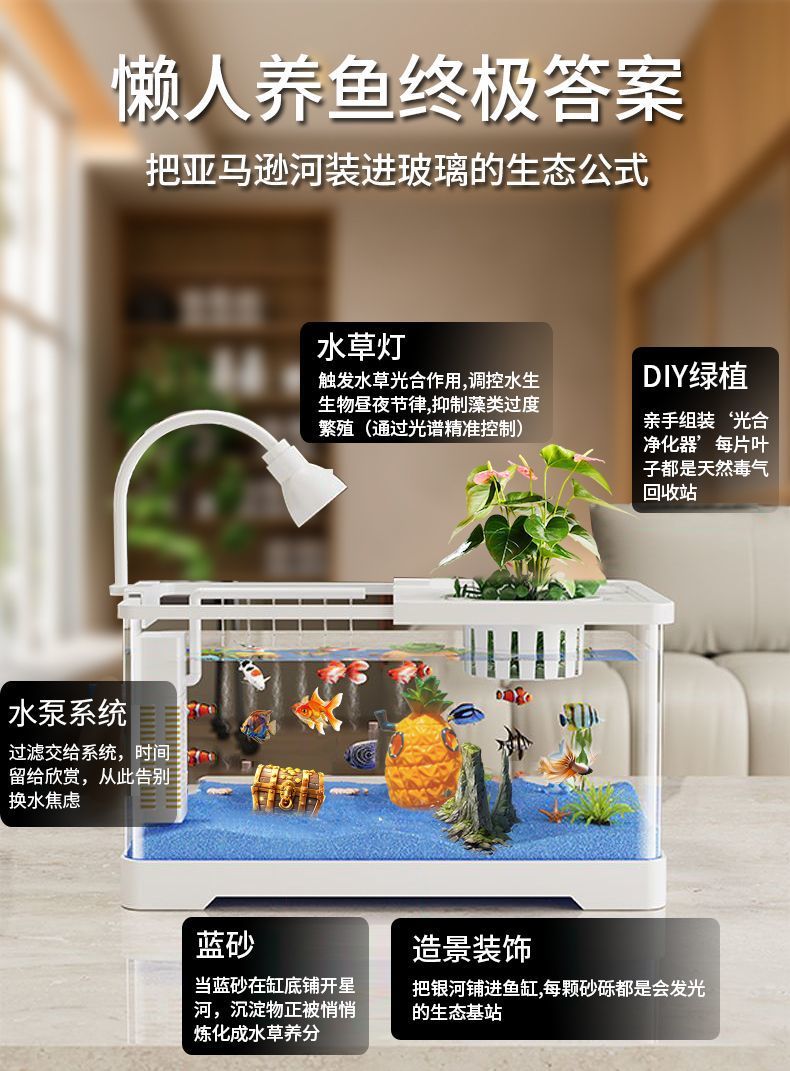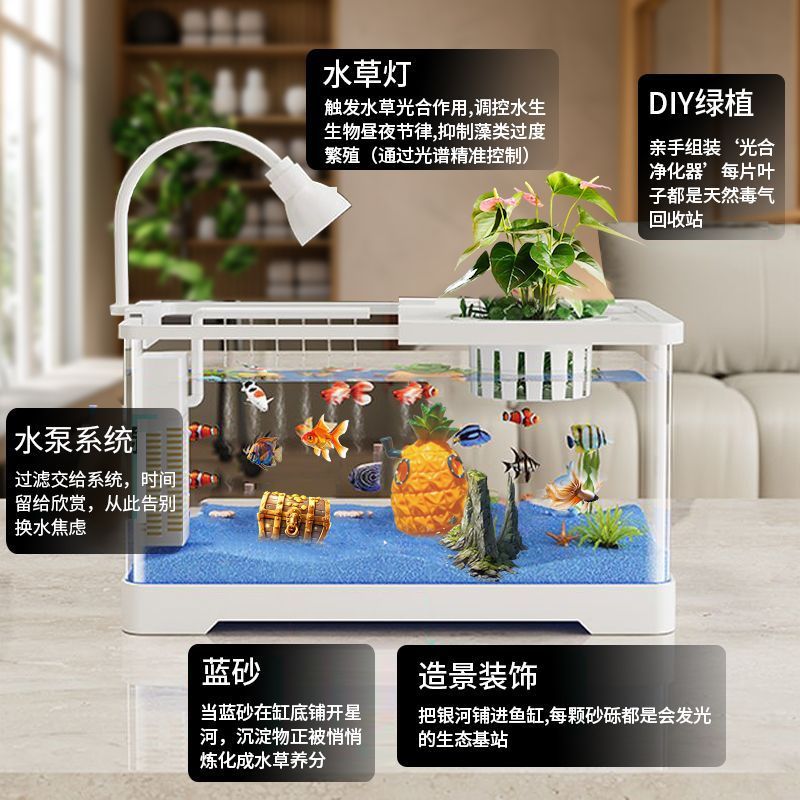 어항, 중소형 금붕어 수조, 생태 조경, 가정용 플라스틱 거실, 중소형 물 교환 없는 데스크탑 수족관