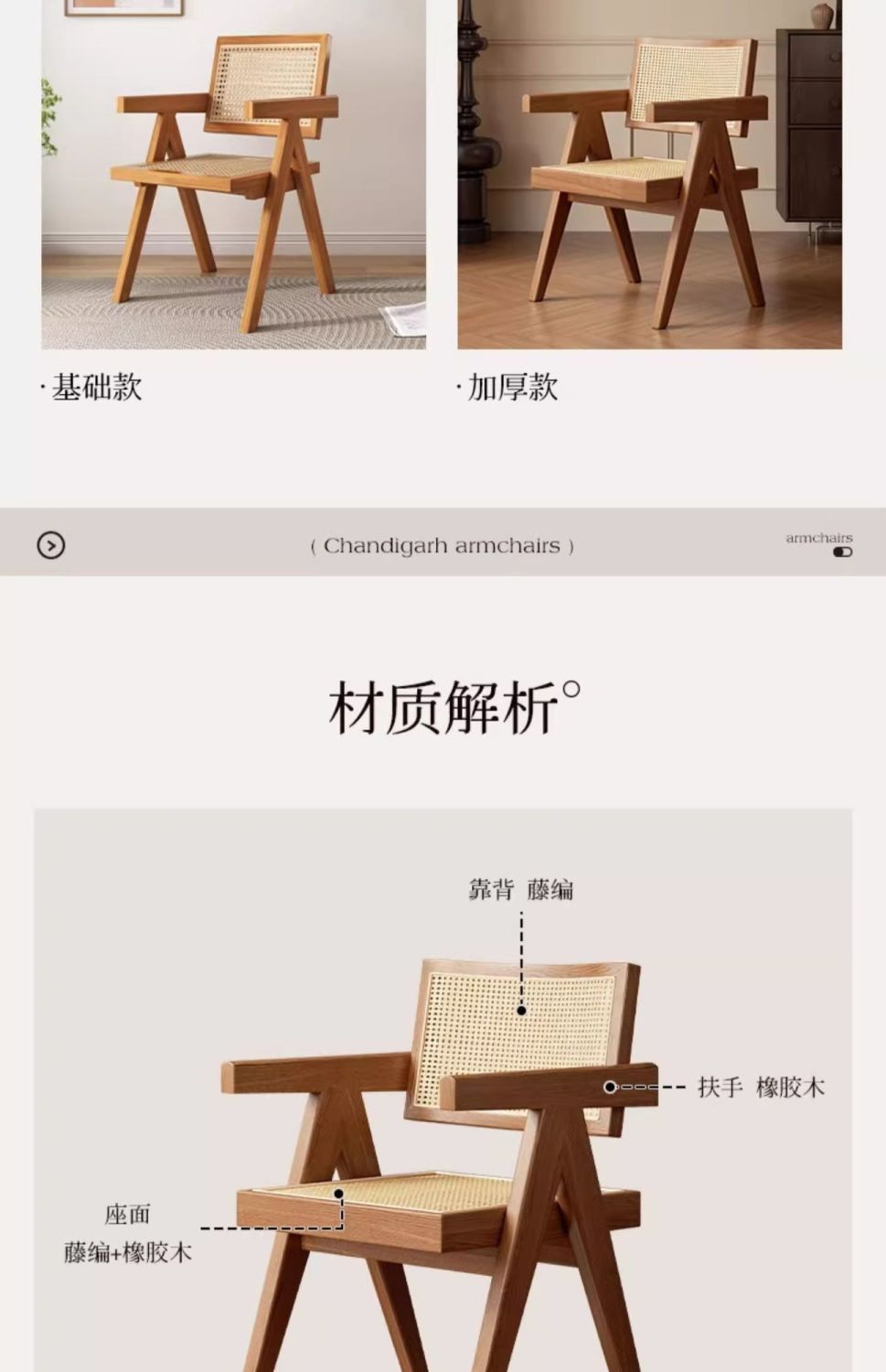 Chandigarh 의자 홈 등나무 식당 의자 단단한 나무 북유럽 통나무 스타일 B&B 등받이 인터넷 연예인 와비사비 스타일 식당 의자스토어 가기