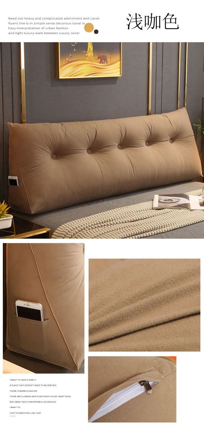 삼각형 침대 옆 베개, 침대 쿠션, 이중 등받이, 허리 보호대, 소파, 침실 플러시 천, 탈부착 및 세탁 가능한 베개