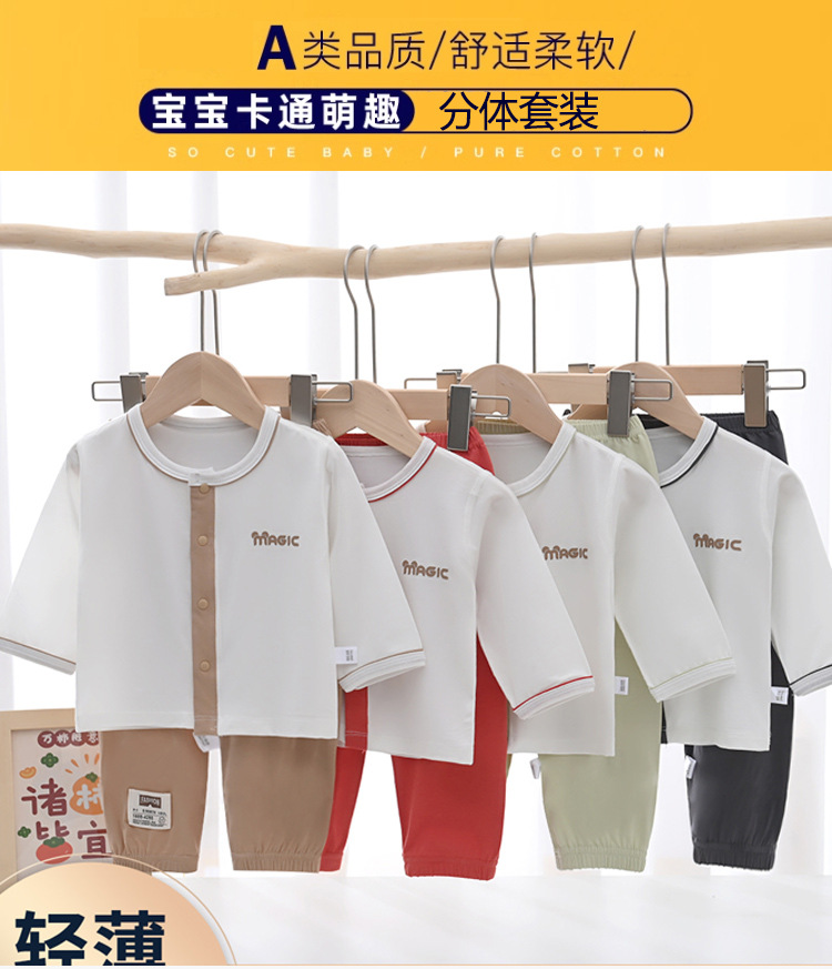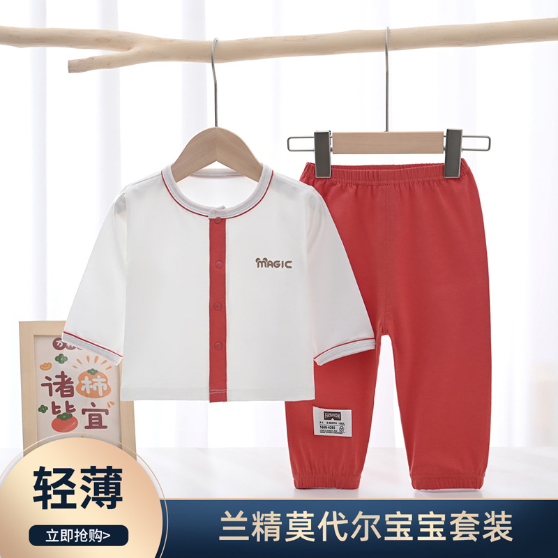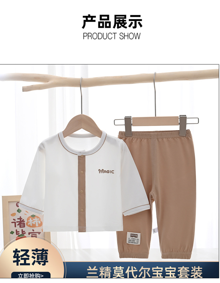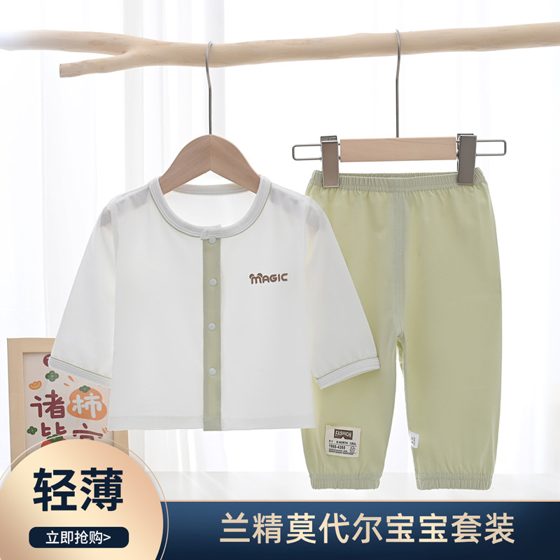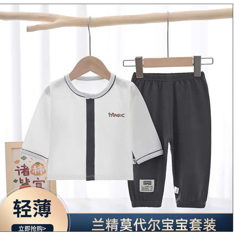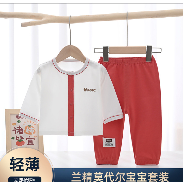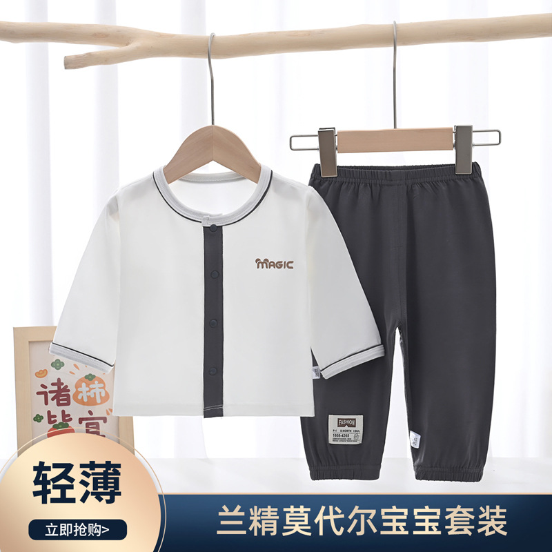 아동용 모달 슈트, 유아용 잠옷, 얇은 남아 및 여아 가정복, 여름용 유아용 7부소매 에어컨 의류스토어 가기