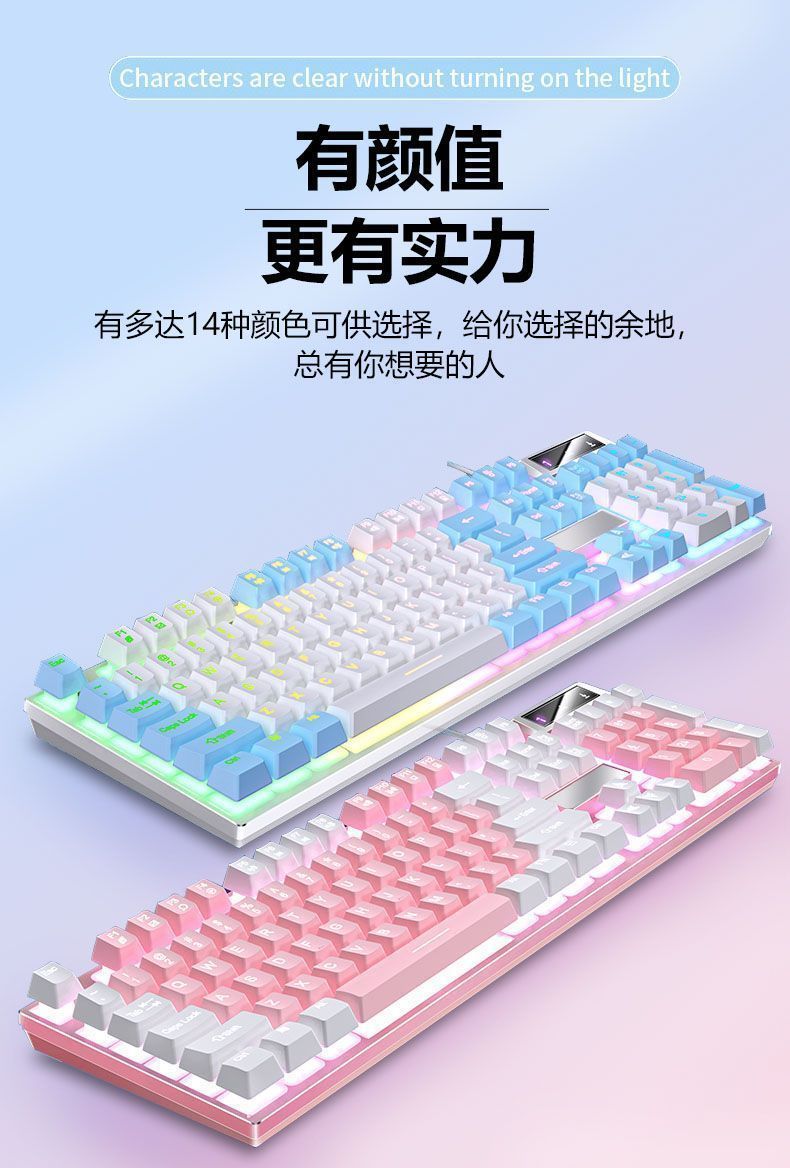 • 핑크-화이트 라이트 [기계식 느낌]-싱글 키보드 [1년 보증] + 게이밍 마우스