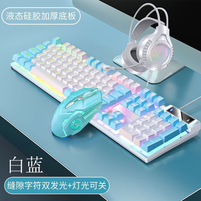풀 사이즈 파란색과 흰색 이중 흰색 조명 유선 키보드 기계적 느낌 게임 백라이트 e-스포츠 사무실 USB 외부스토어 가기