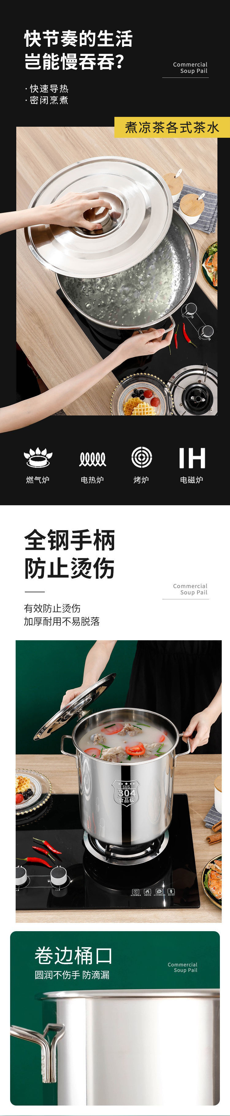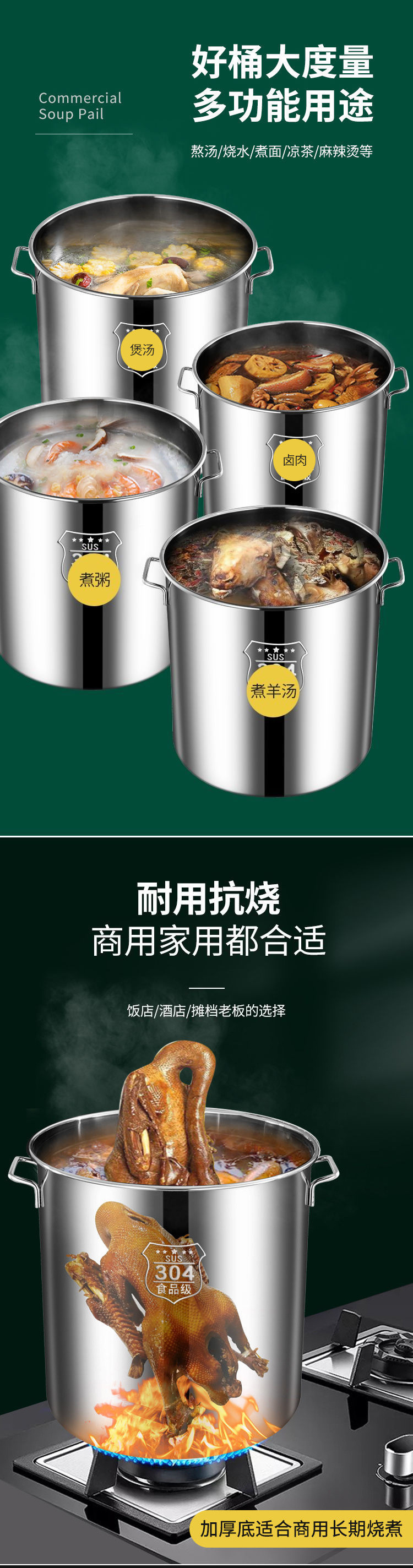 304 스테인레스 스틸 수프 버킷, 뚜껑이 있는 두꺼운 가정용 스테인레스 스틸 수프 냄비, 상업용 쌀 버킷, 오일 버킷, 대용량 저장 도매