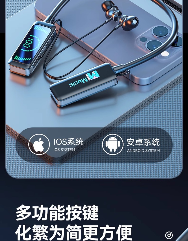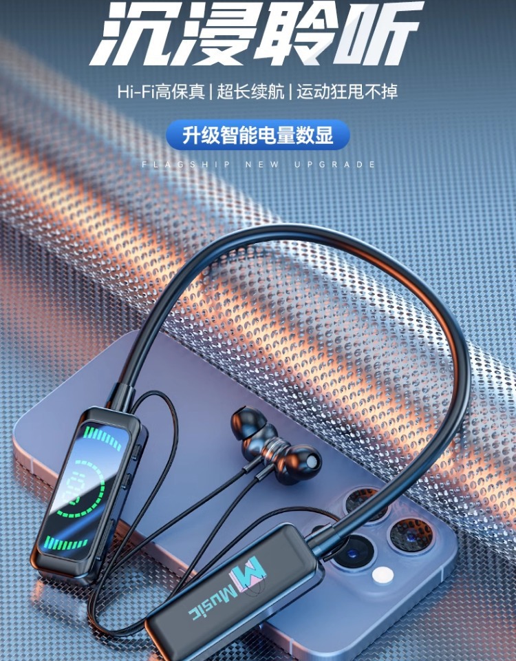 Douyin의 인기 있는 목 장착형 Bluetooth 헤드셋, 무선 목 장착형 이어폰, 소음 감소, 매우 긴 배터리 수명, 스포츠 및 달리기, 남성 및 여성