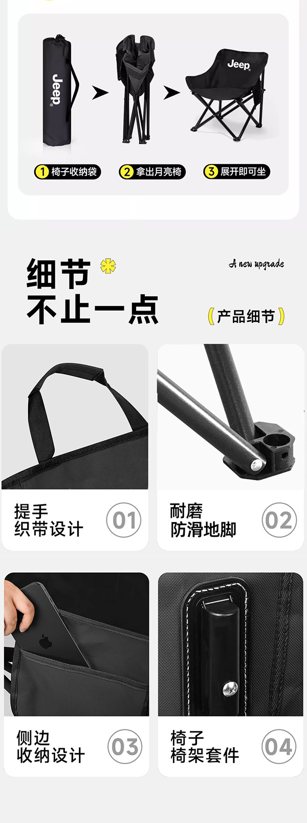 • 대형 검정색 접이식 의자
