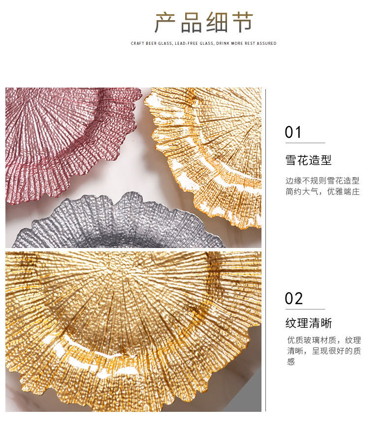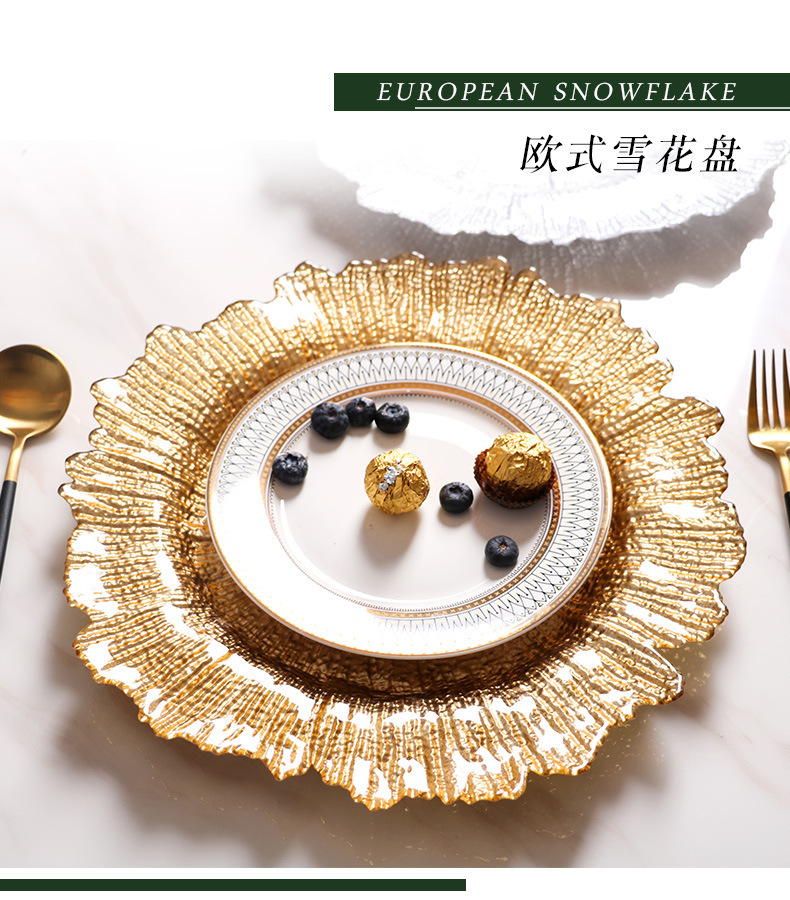 불규칙한 눈송이 접시 연회 파티 장식 유리 접시 유럽 스타일의 가벼운 럭셔리 서양 음식 장식 접시 과일 접시 가정용