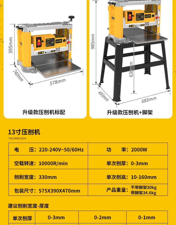 록스 목공 대패 전기 대패 새로운 테이블 대패 고출력 전체 구리 모터 가정용 다기능 대패스토어 가기
