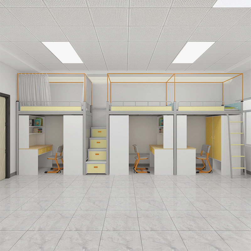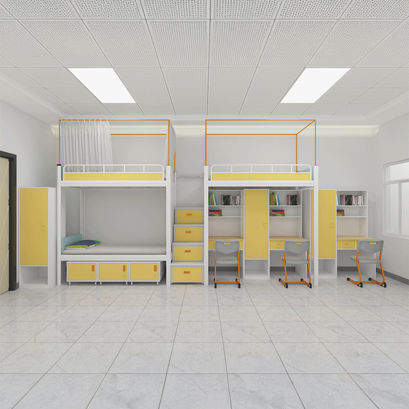 2층침대 기숙사 학교 2인용 기숙사 2층침대 학생 철제 프레임 아파트 상단 침대 및 하단 테이블 조합 침대