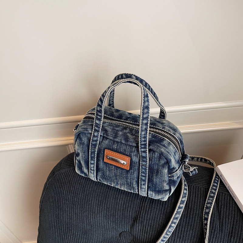 레트로 데님 크로스바디 휴대폰 가방, 가로형 휴대용 미니 보스턴 숄더백, 여성을 위한 얼룩 방지 작은 가방, 여름 트렌드스토어 가기