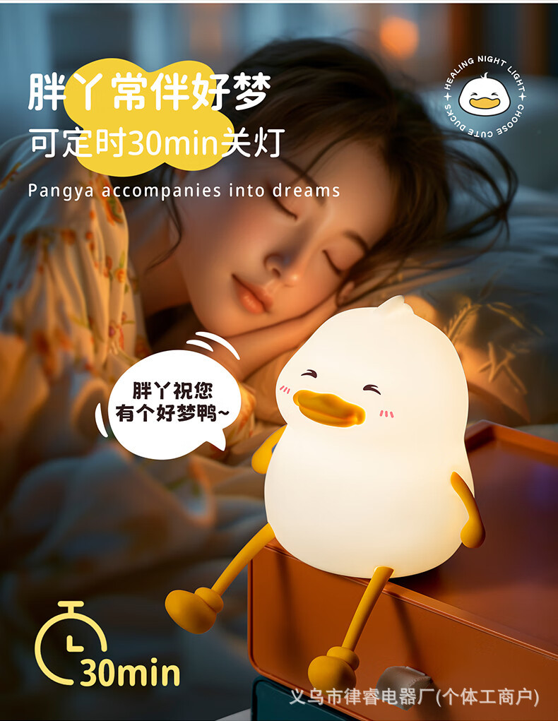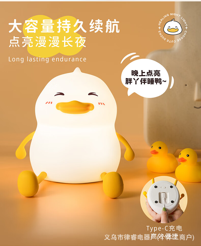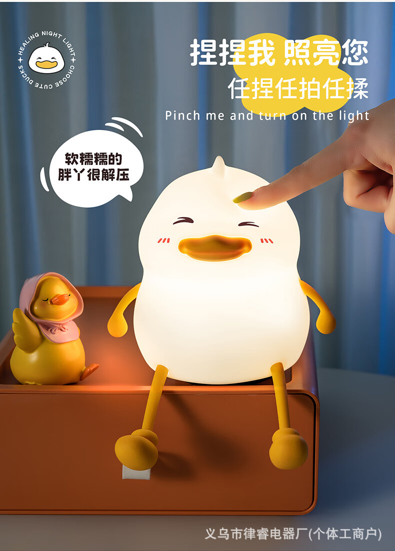 크로스보더 작은 오리 실리콘 야간등, 터치 램프, 어린이 눈 보호 침대 옆 램프, 창의적인 테이블 램프, 다채로운 분위기 조명스토어 가기
