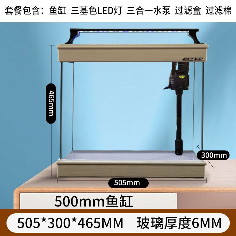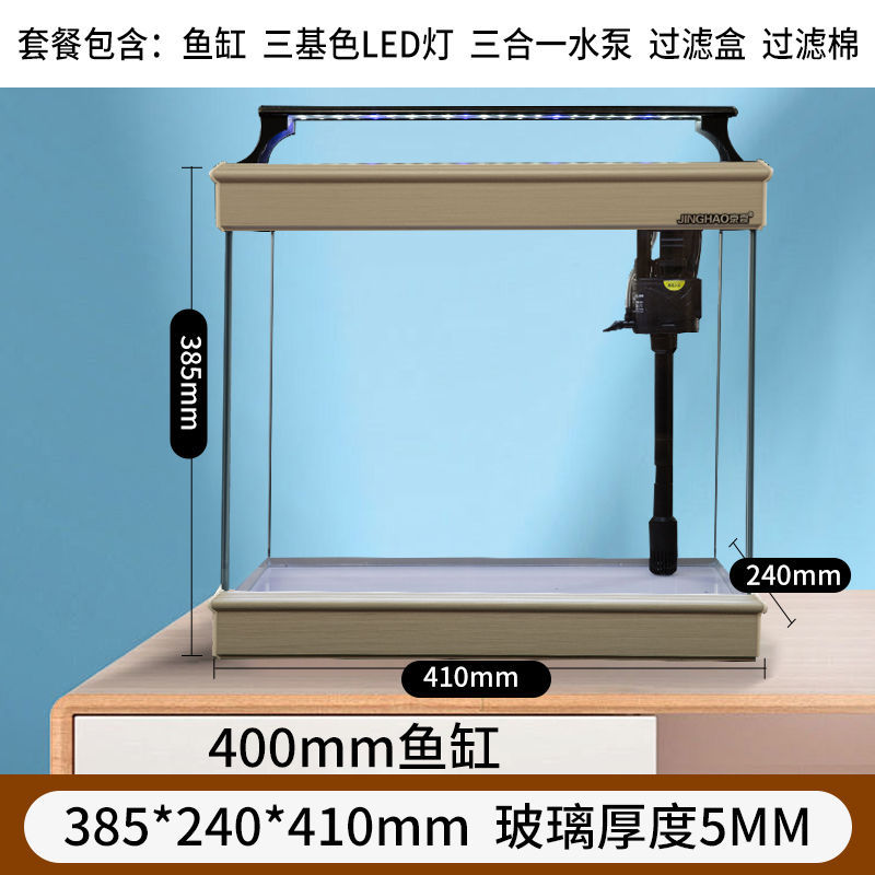 물 교환 없이 조경 수족관 크리 에이 티브 골드 슈퍼 화이트 바닥 스탠딩 사무실 책상 수조 새로운 새로운 중국 스타일 세트