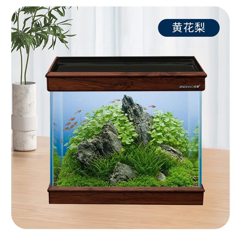 물 교환 없이 조경 수족관 크리 에이 티브 골드 슈퍼 화이트 바닥 스탠딩 사무실 책상 수조 새로운 새로운 중국 스타일 세트스토어 가기