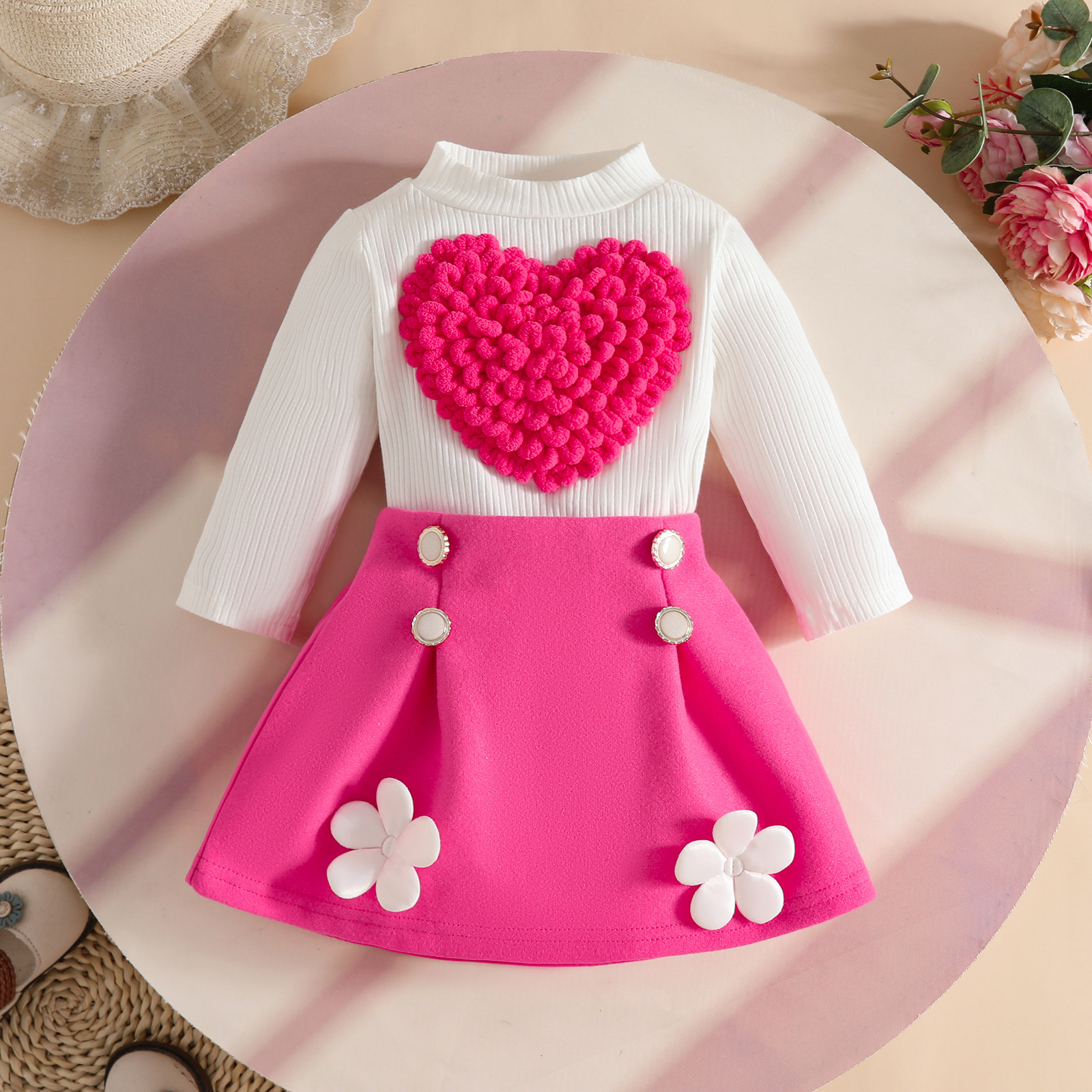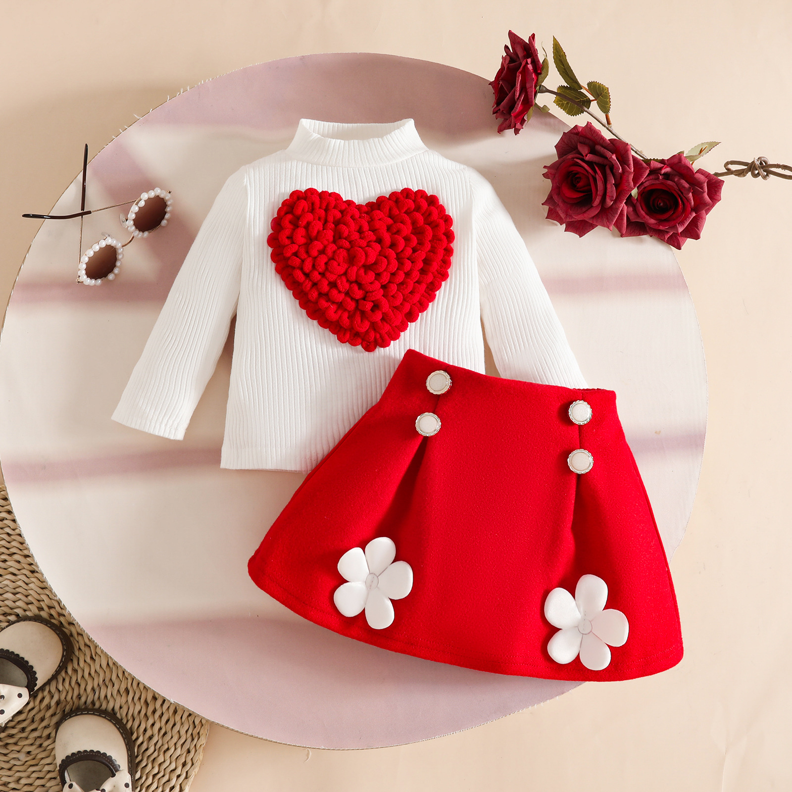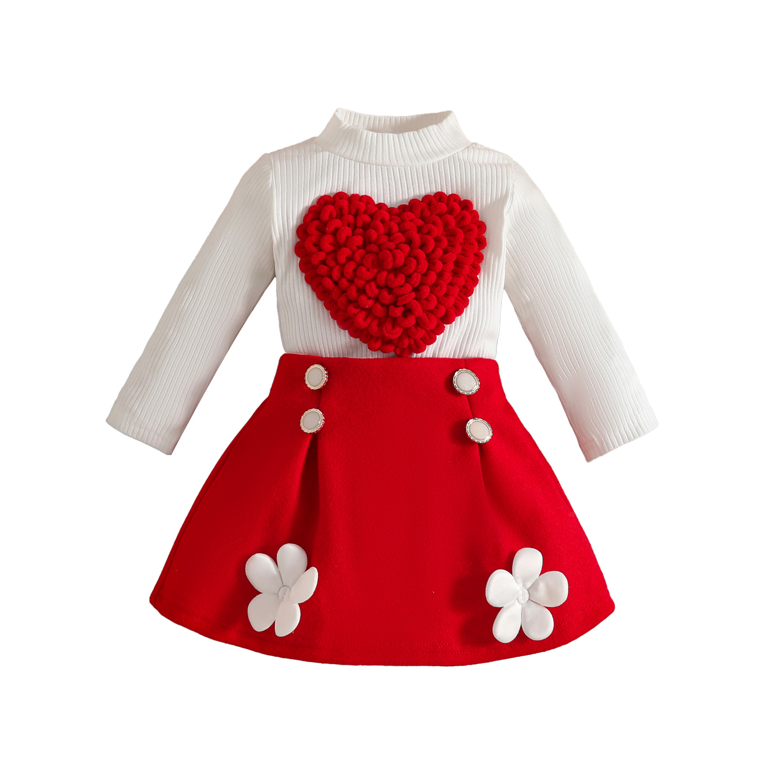 달콤한 아기 소녀 긴팔 러브 탑 스커트 정장 0-3 세 아기 입체 러브 티셔츠 아플리케 모직 스커트