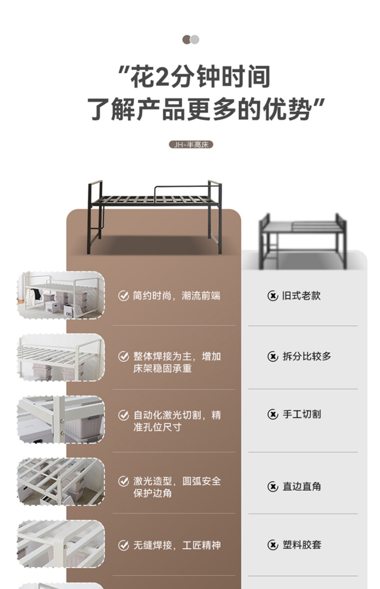 # 소형 아파트를 위한 새로운 스타일의 어린이용 반 높이 침대, 소년 소녀 및 청소년을 위한 성인용 통합 철제 로프트 침대, 금속 철제 프레임스토어 가기