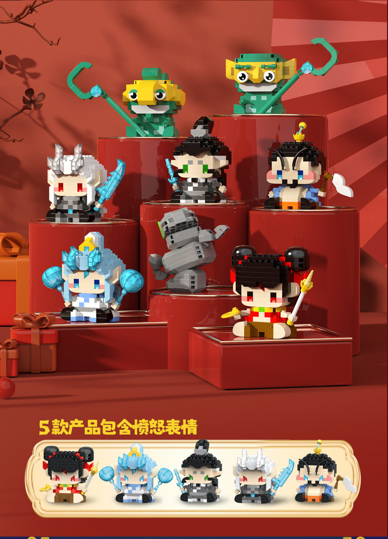 2025 인기 신제품 네자와 아오빙 중국풍 트렌디 만화 캐릭터 피규어 모델 장식품 교육용 블록 조립 장난감스토어 가기