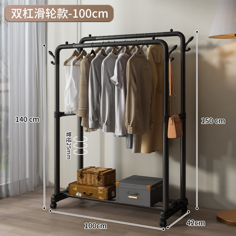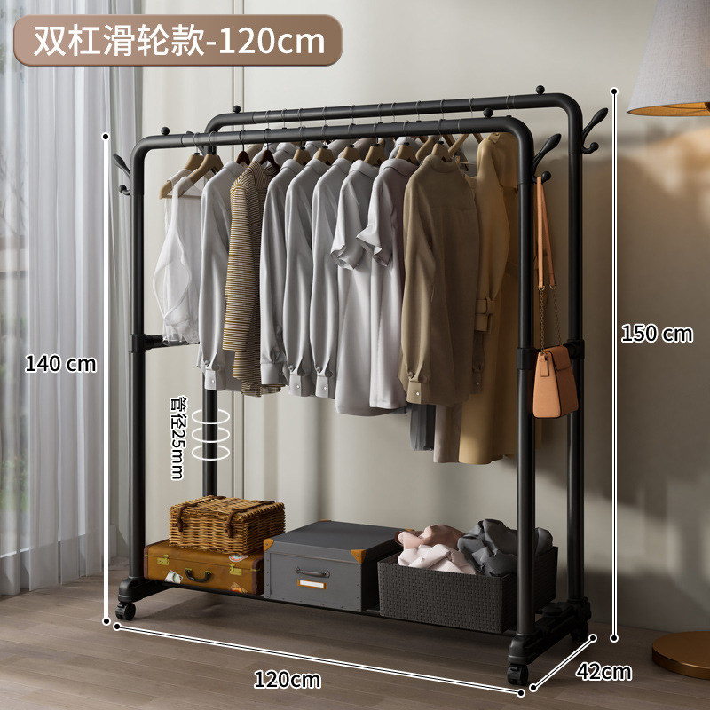 옷걸이 스탠드형 옷걸이 가정용 침실 발코니 빨래 건조대 이중 봉 이동식 심플 옷걸이스토어 가기