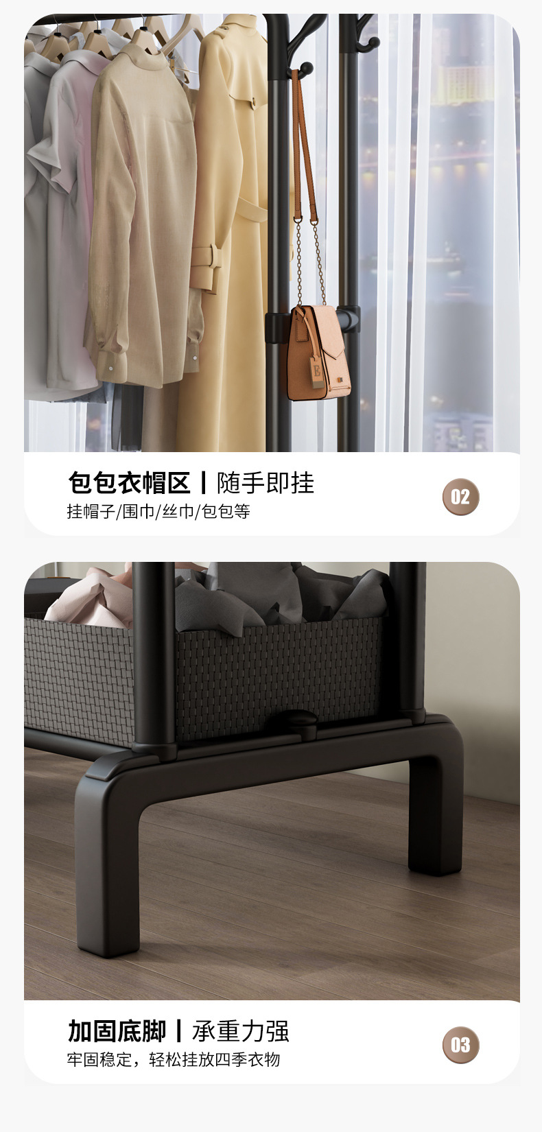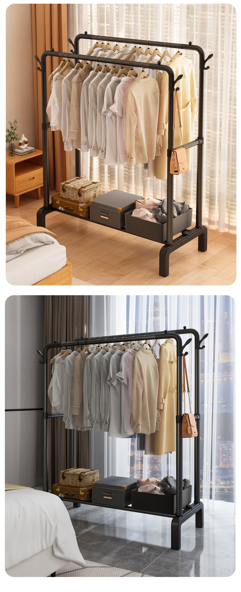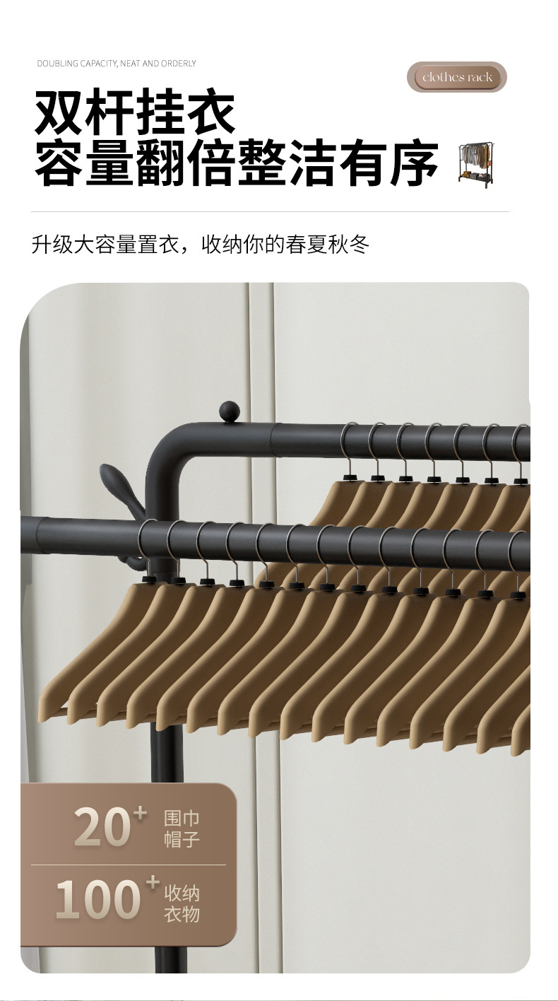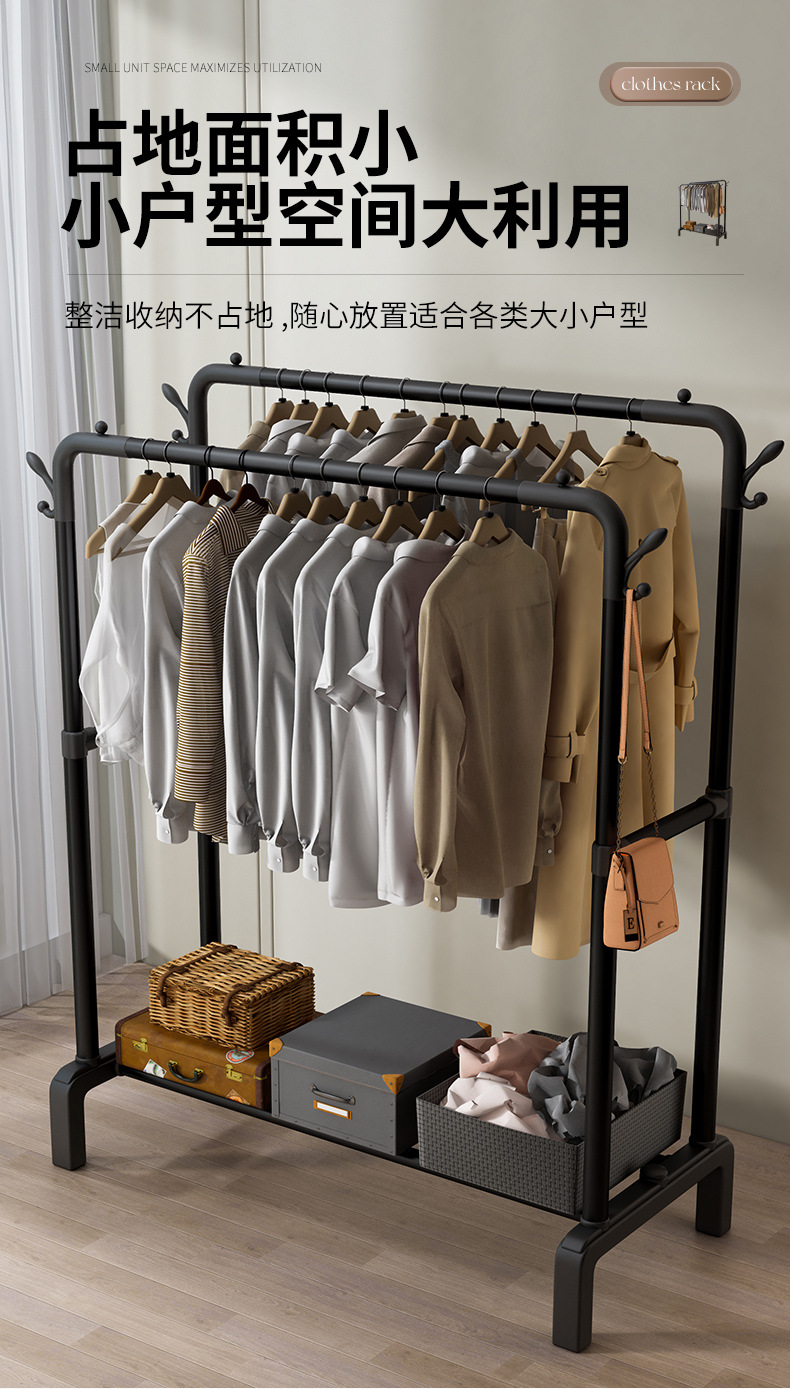 옷걸이 스탠드형 옷걸이 가정용 침실 발코니 빨래 건조대 이중 봉 이동식 심플 옷걸이