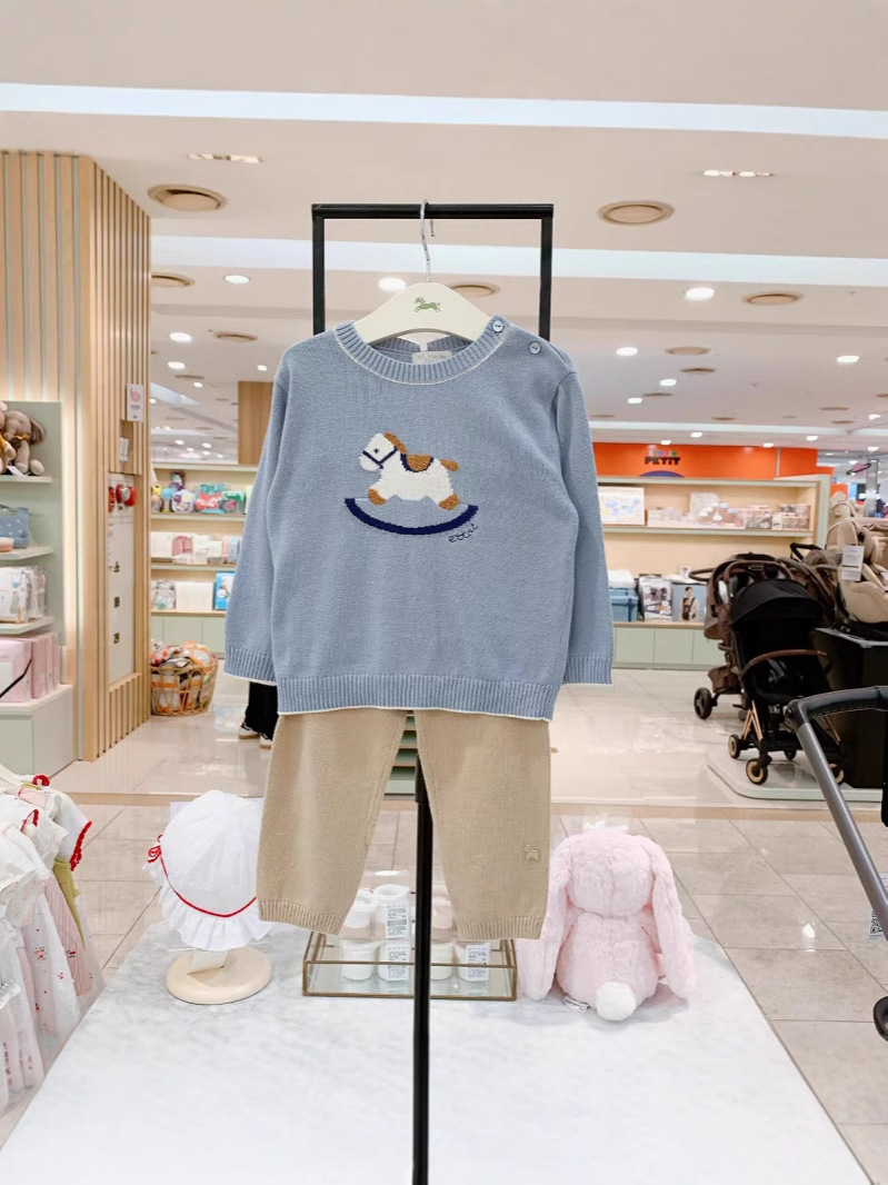 신제품 ETT Little Pegasus 한국 아동복 2025 가을 아동 남녀공용 포니 스웨터 슈트스토어 가기