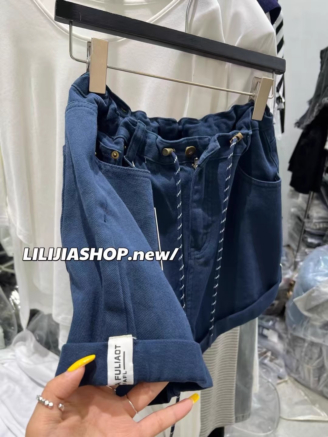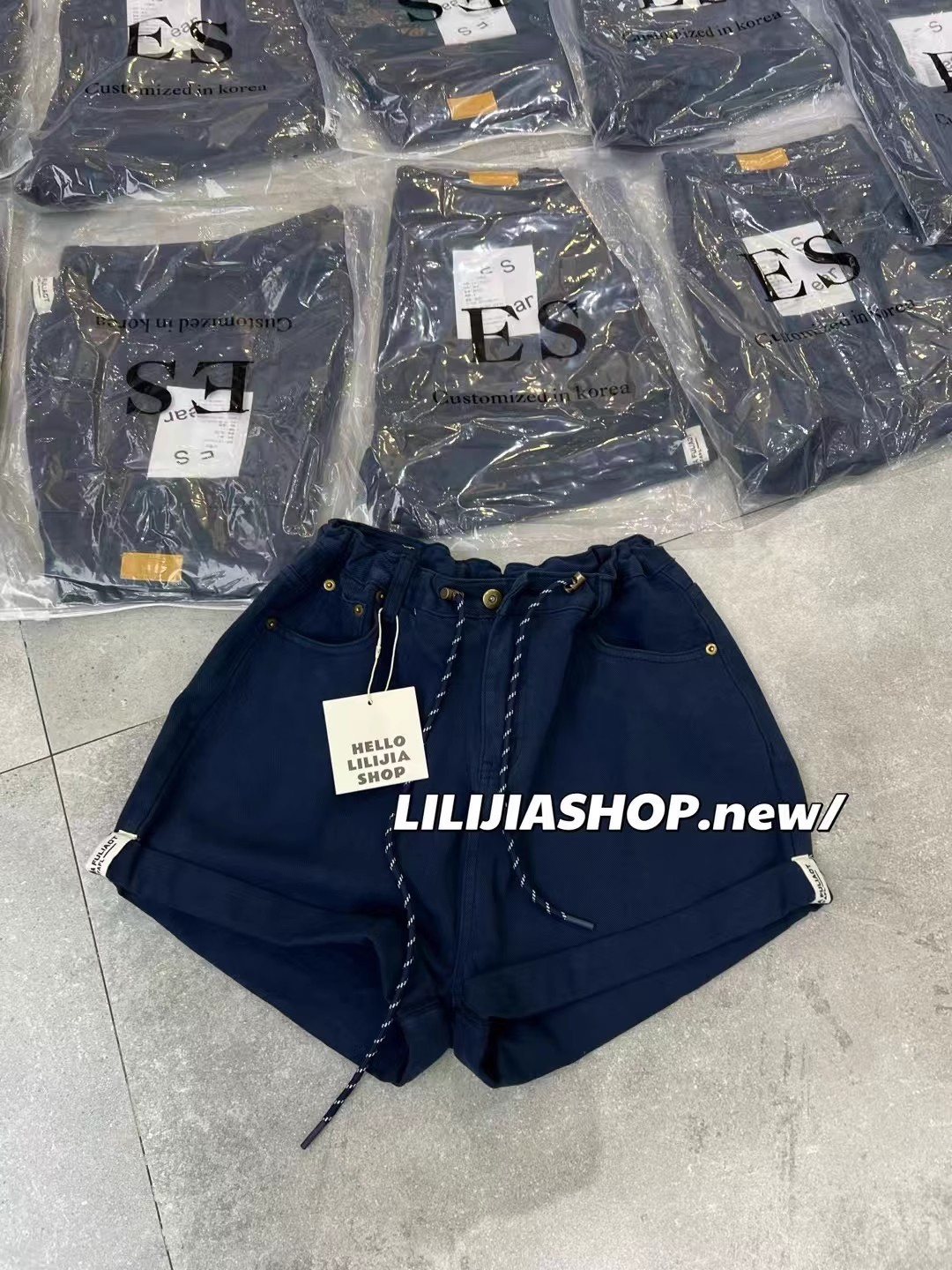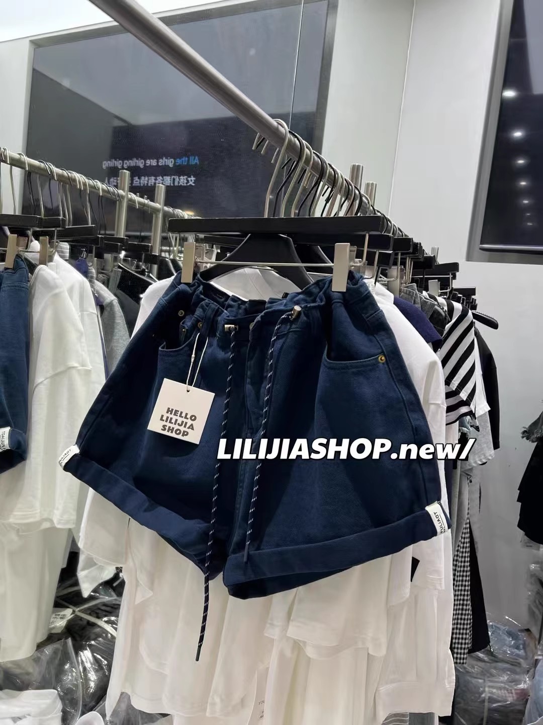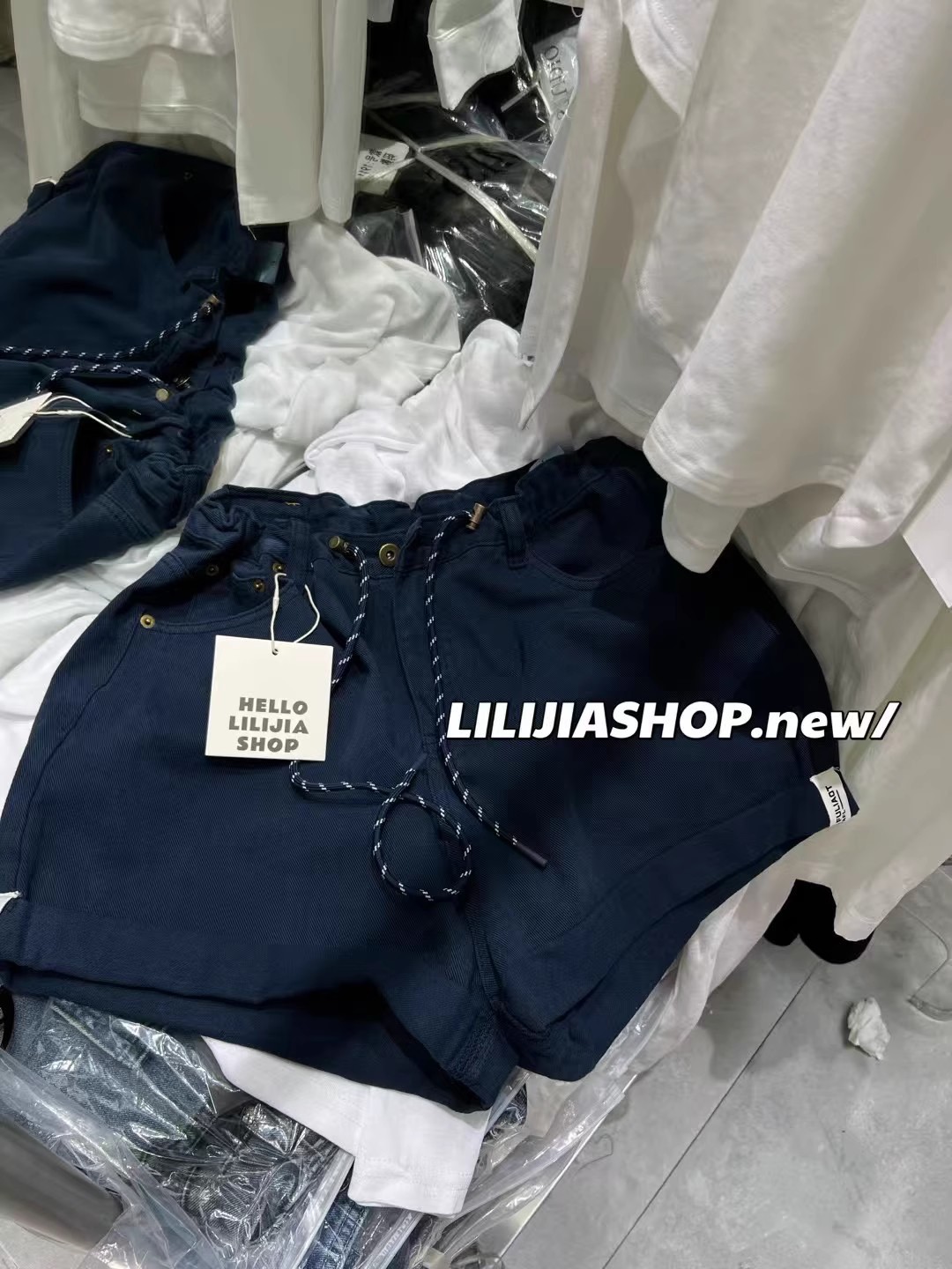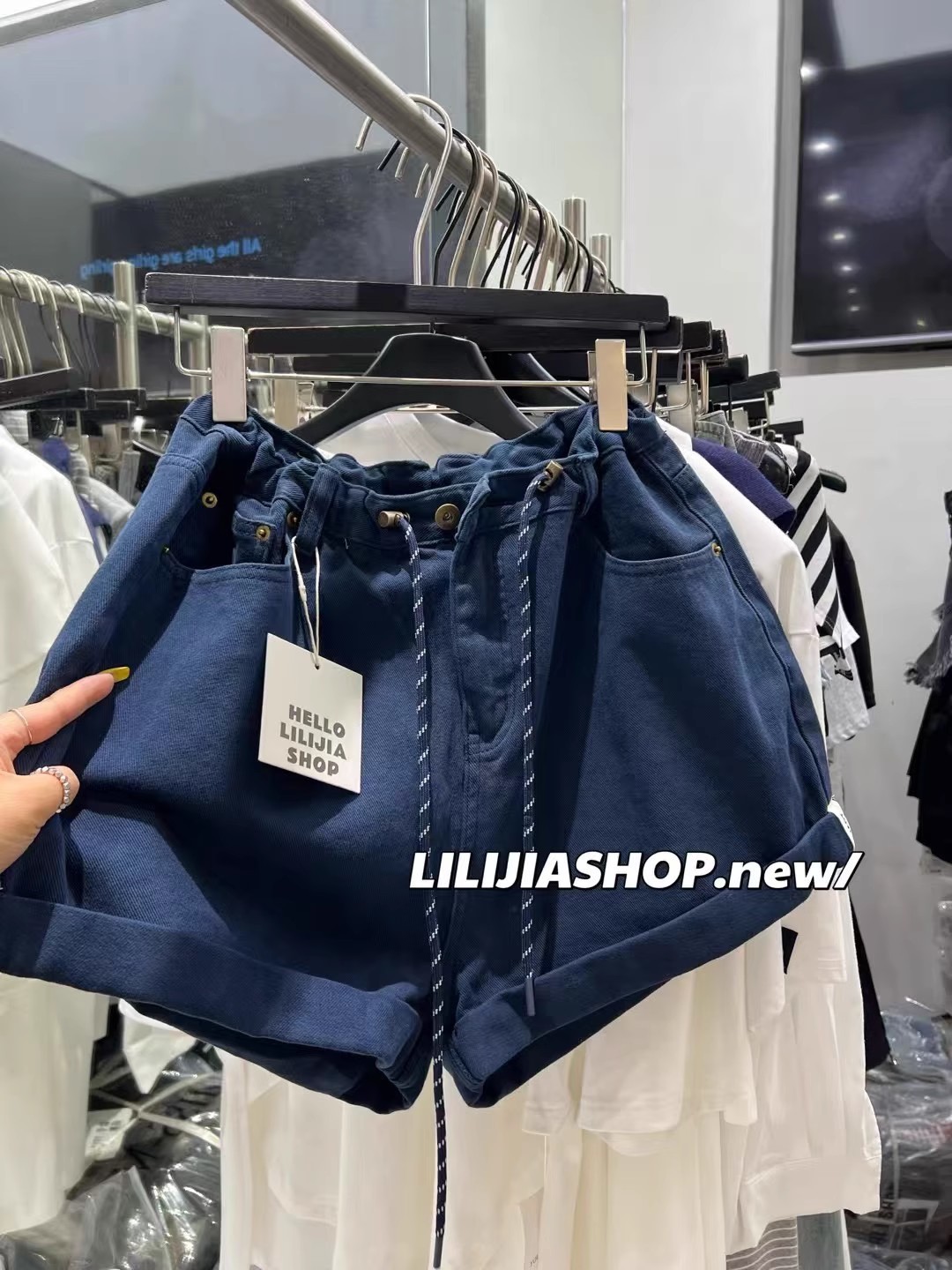 Thirteen Lines 2025 여름 새로운 스타일 다목적 하이 웨이스트 데님 드로스트링 탄성 와이드 레그 팬츠 여성 캐주얼 반바지스토어 가기
