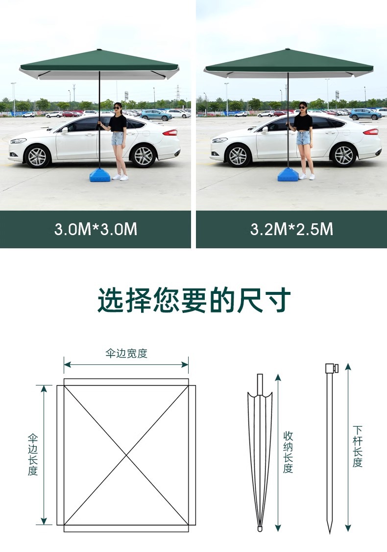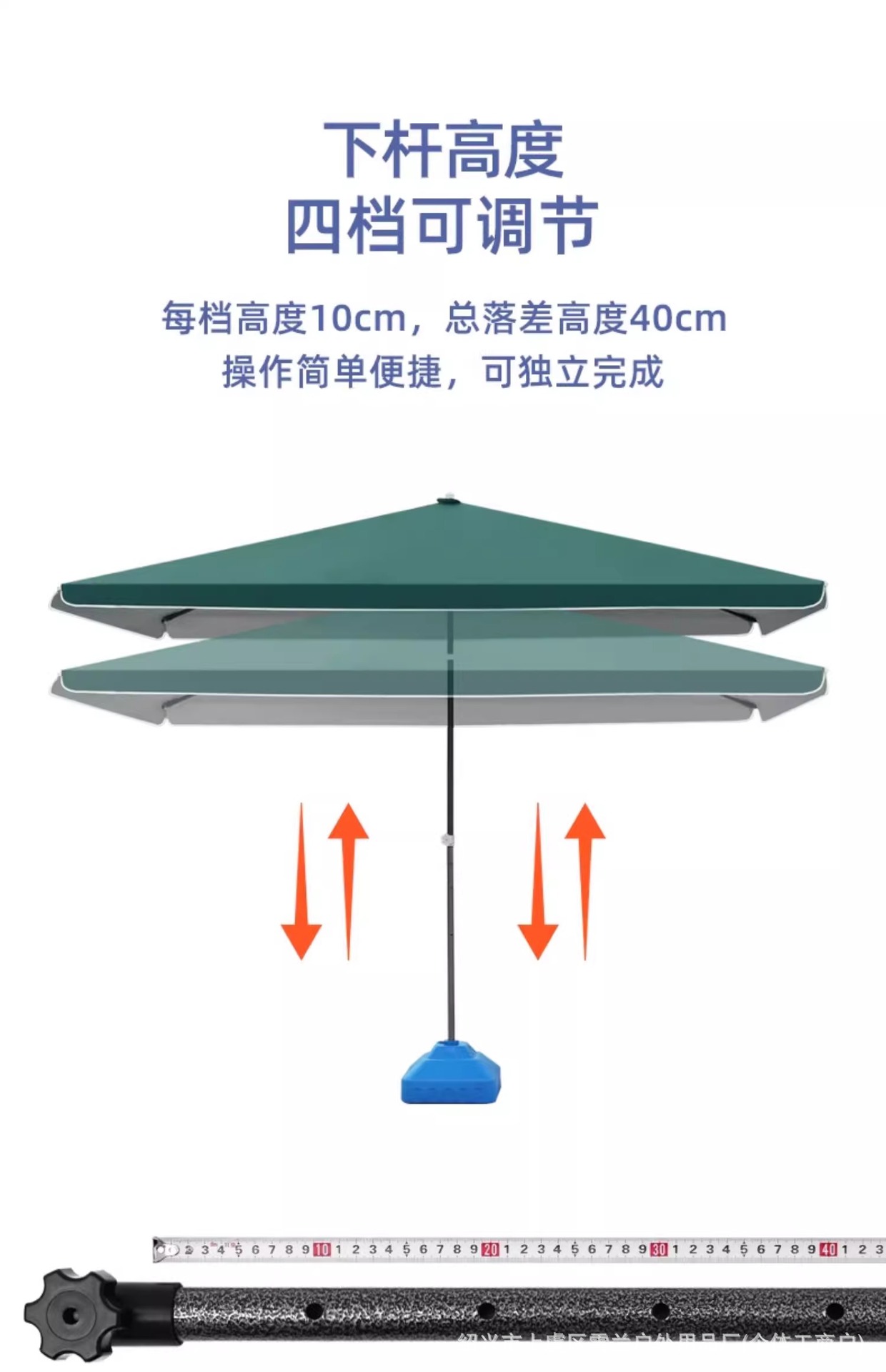 사각형 태양 우산, 야외 매점 대형 우산, 대형 상업용 우산, 두꺼운 태양 보호 및 방수 안뜰 대형 우산스토어 가기