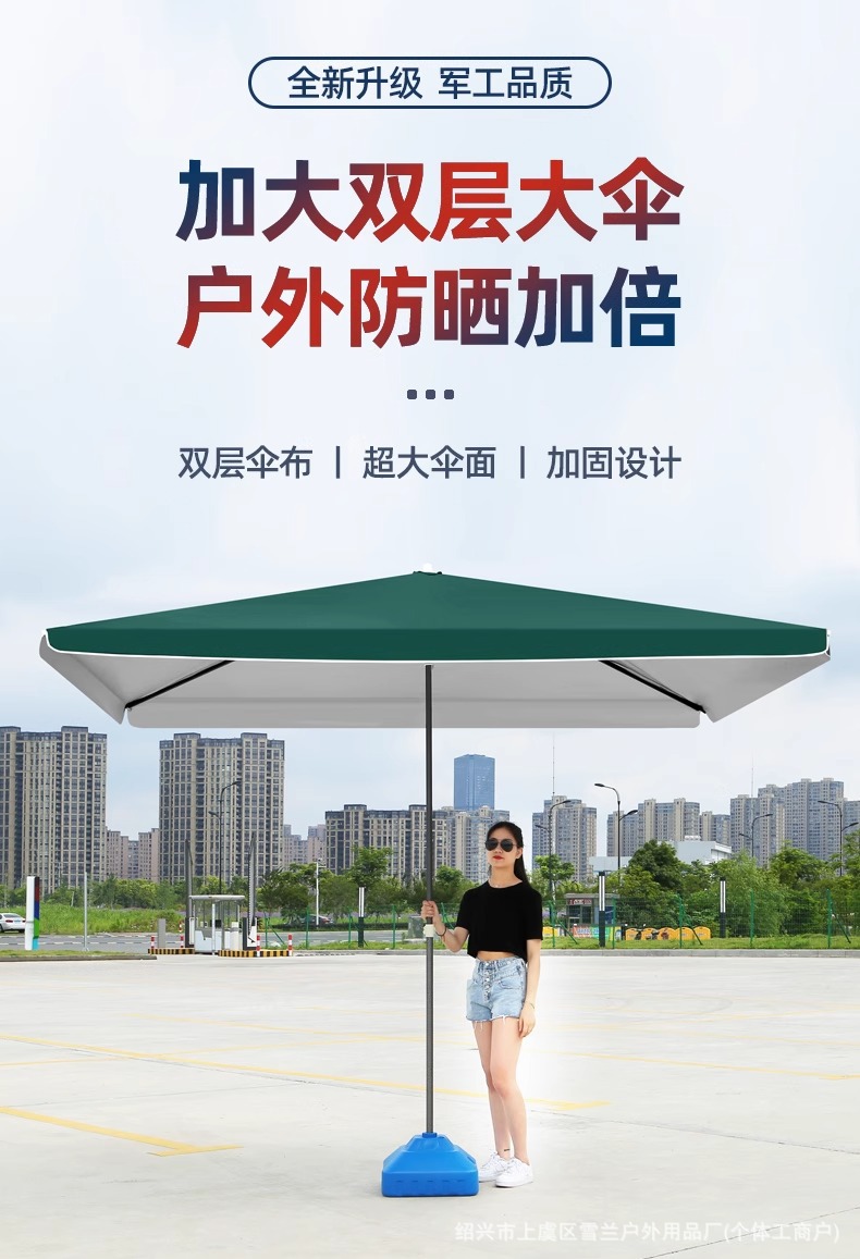 사각형 태양 우산, 야외 매점 대형 우산, 대형 상업용 우산, 두꺼운 태양 보호 및 방수 안뜰 대형 우산