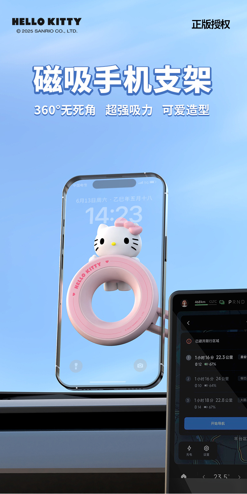 키티 자동차 휴대 전화 홀더 자기 흡입 2025 새로운 네비게이션 화면 전용 BYD 신 에너지 귀여운 여성