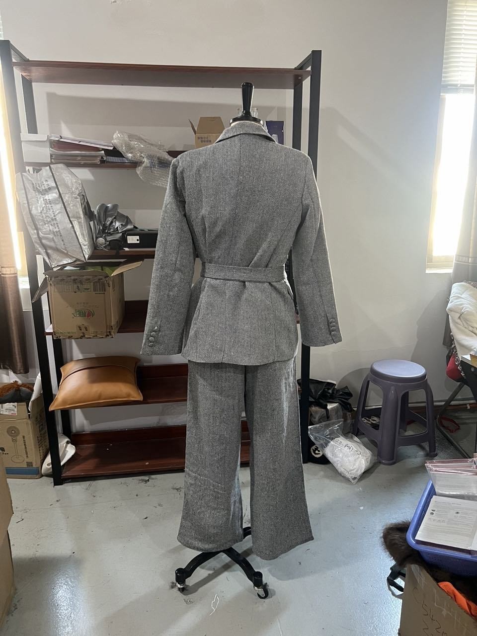 • 피쉬본 서스펜더 블레이저, 스커트, 3피스 그레이 세트
