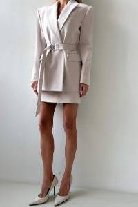 • 피쉬본 서스펜더 블레이저, 스커트, 쓰리피스 세트 - 베이지