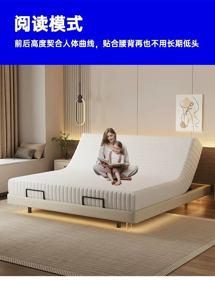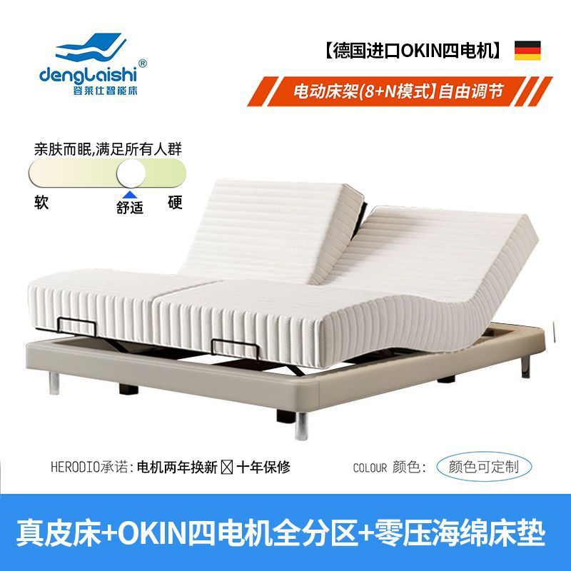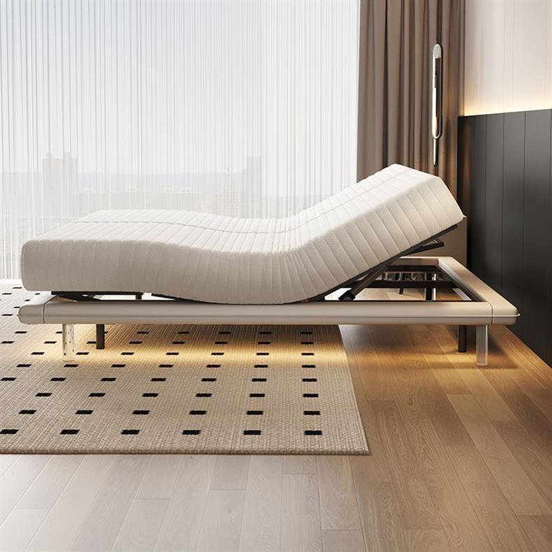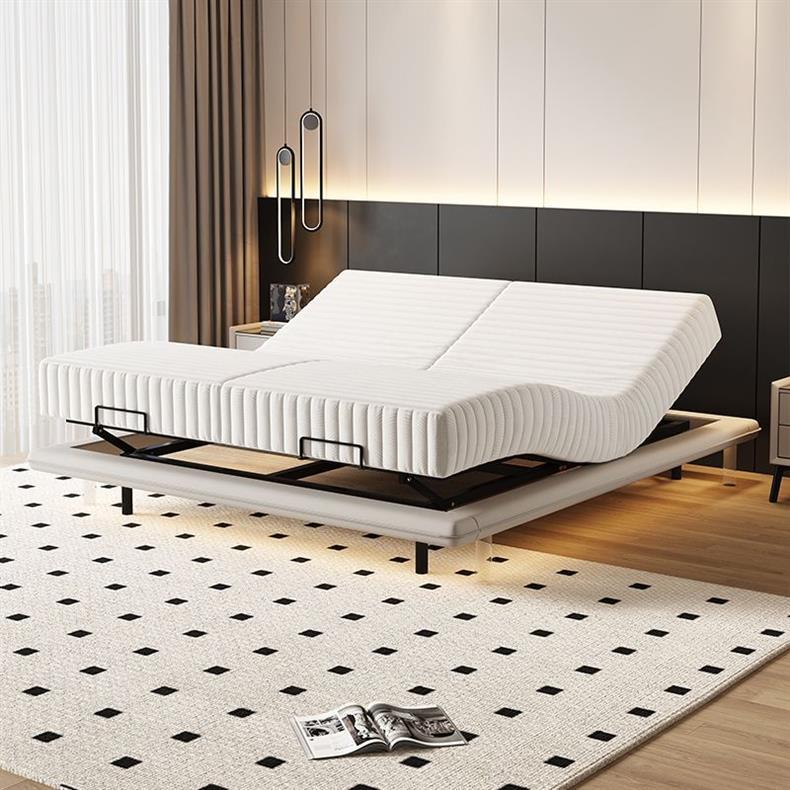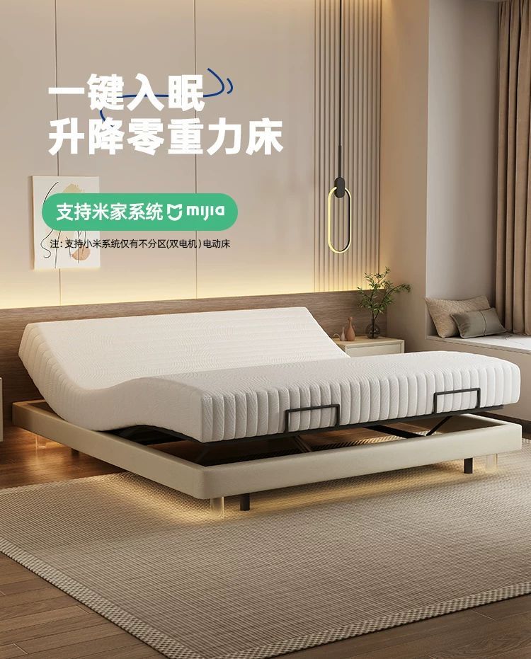 침대가 없는 공중부양 침대, 지능형 전동 리프팅 무중력 침대, 다기능 구역분할 심플 가죽 침대, 원목 침대스토어 가기