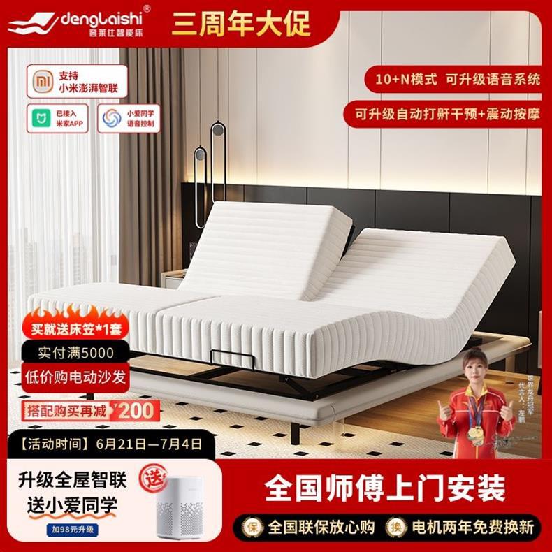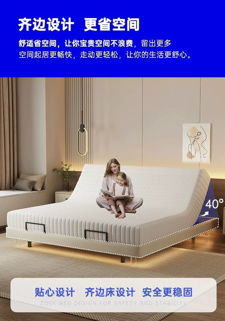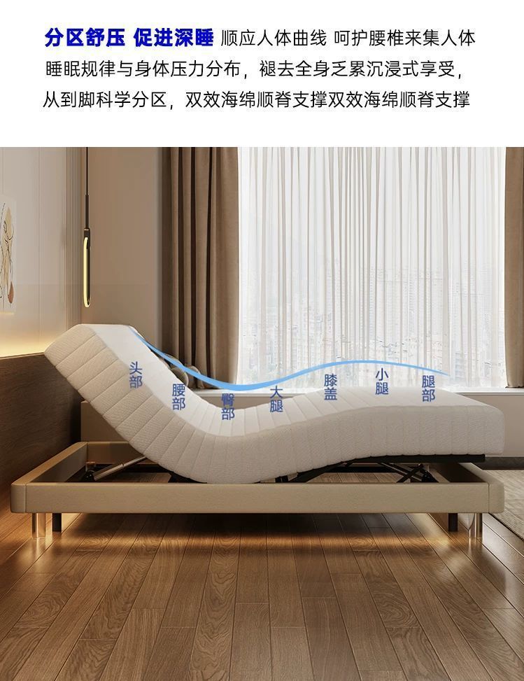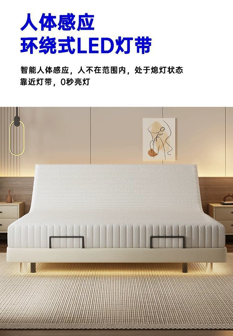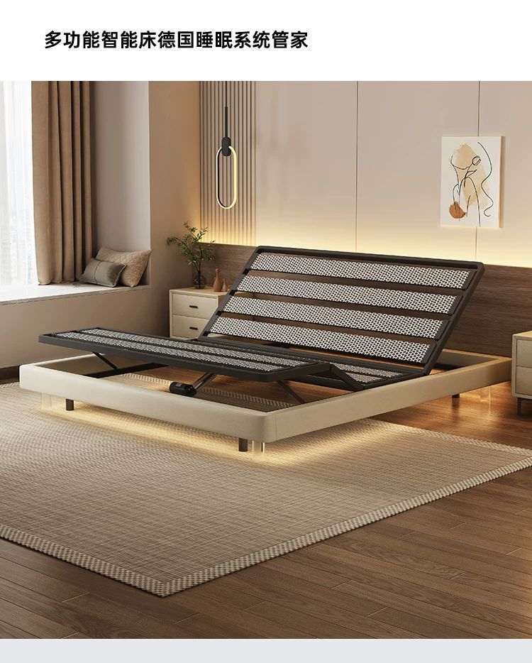 침대가 없는 공중부양 침대, 지능형 전동 리프팅 무중력 침대, 다기능 구역분할 심플 가죽 침대, 원목 침대스토어 가기