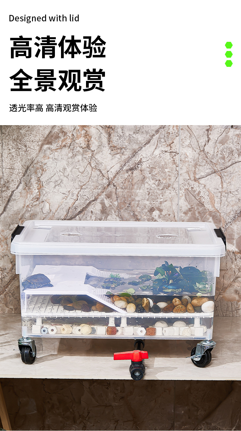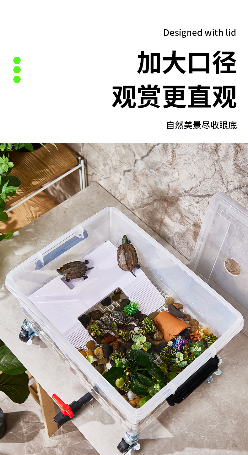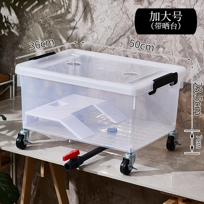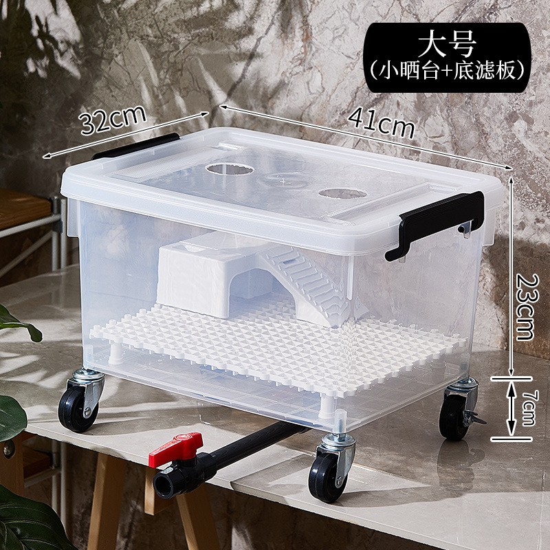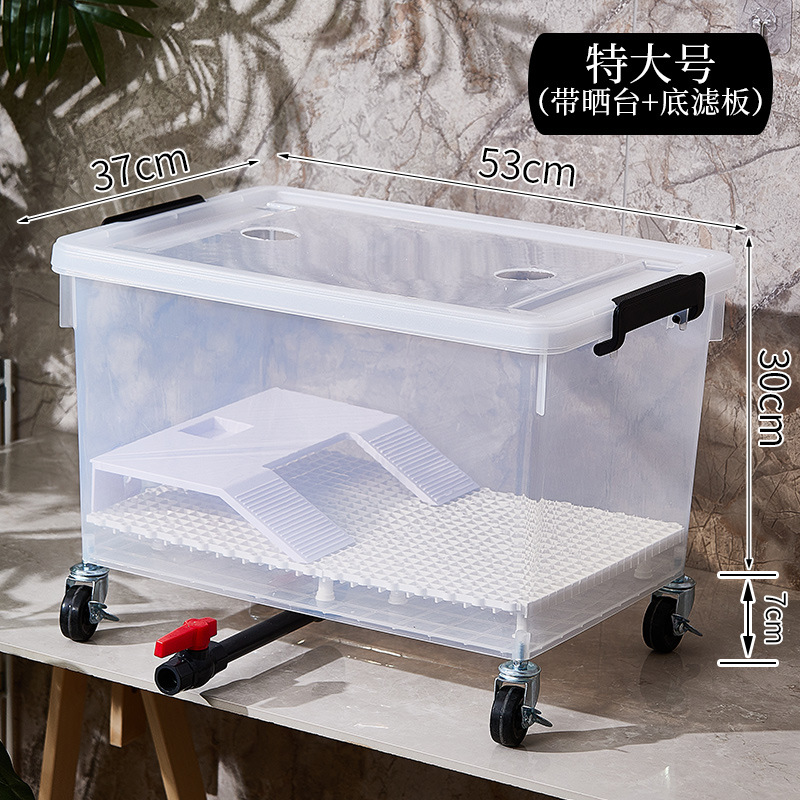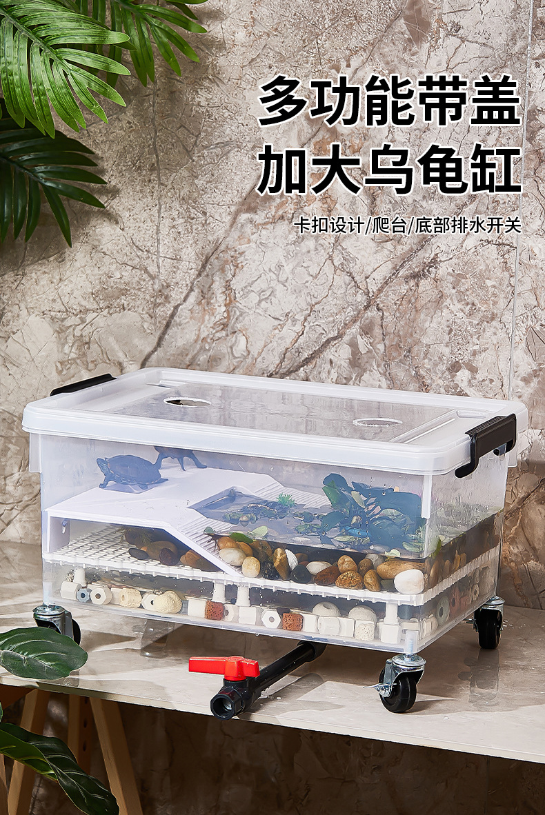 바닥에 배수구가 있는 거북이 사육조, 뚜껑이 있는 투명한 생태계 풀거북 특수 거북이 수조, 가정용 바닥 여과기, 물고기와 거북이 혼합 수조
