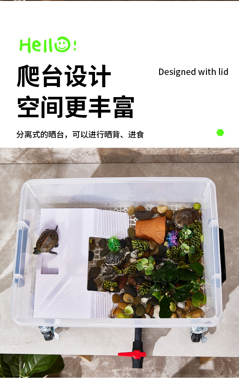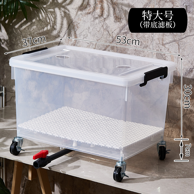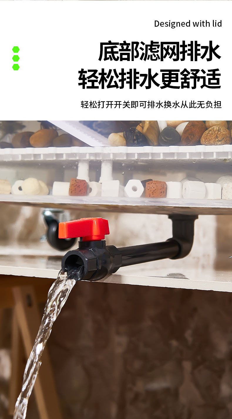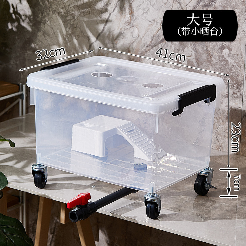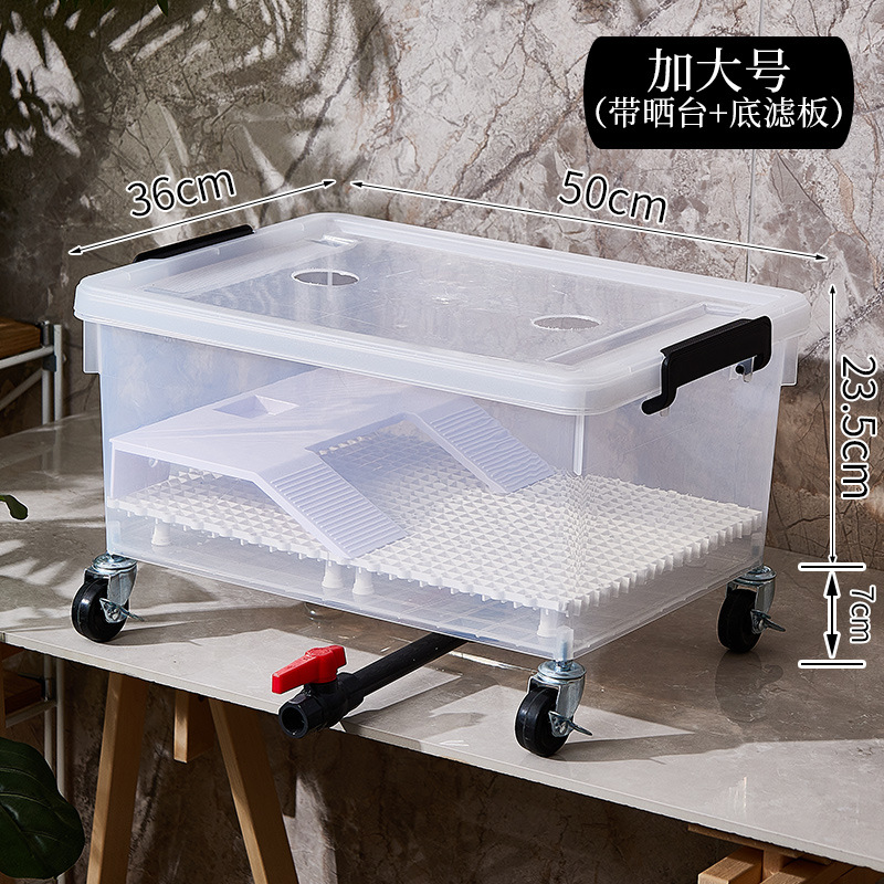 바닥에 배수구가 있는 거북이 사육조, 뚜껑이 있는 투명한 생태계 풀거북 특수 거북이 수조, 가정용 바닥 여과기, 물고기와 거북이 혼합 수조