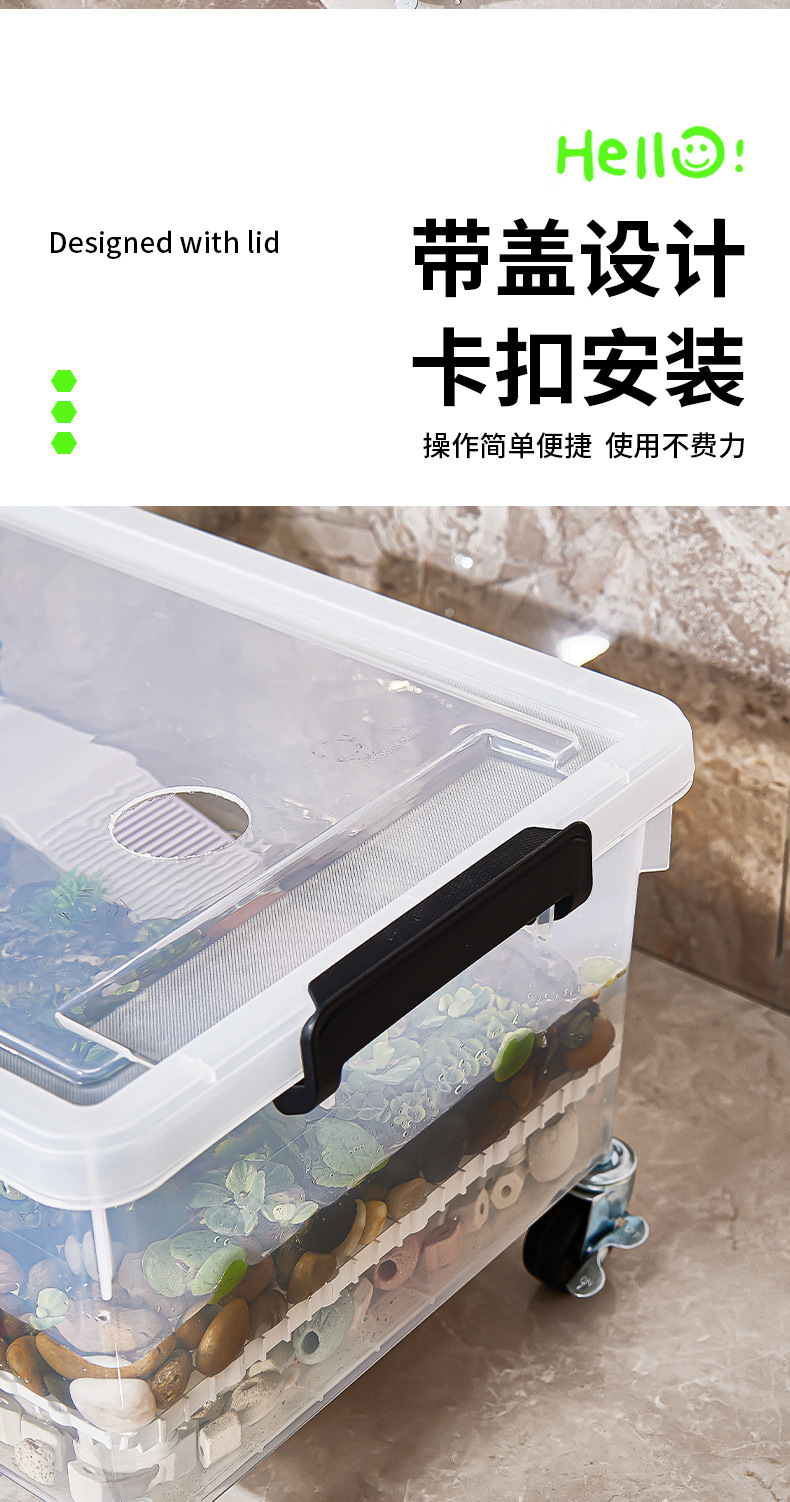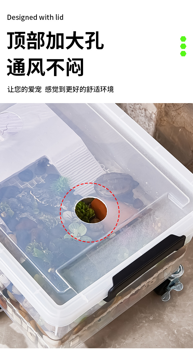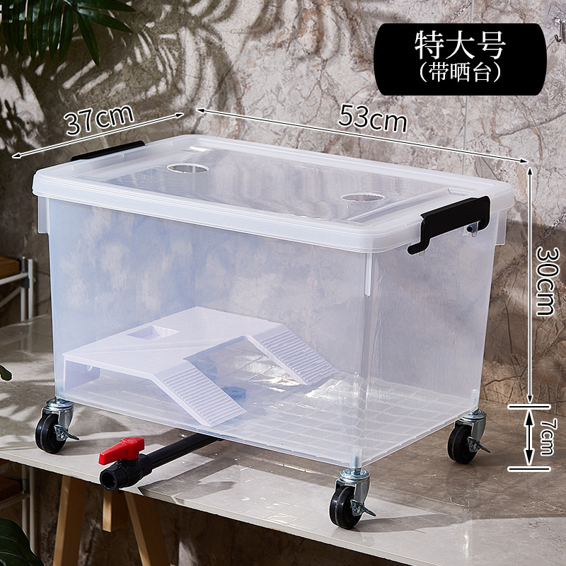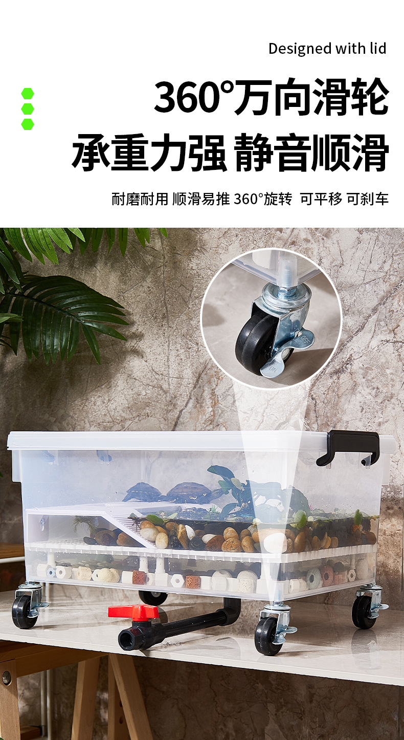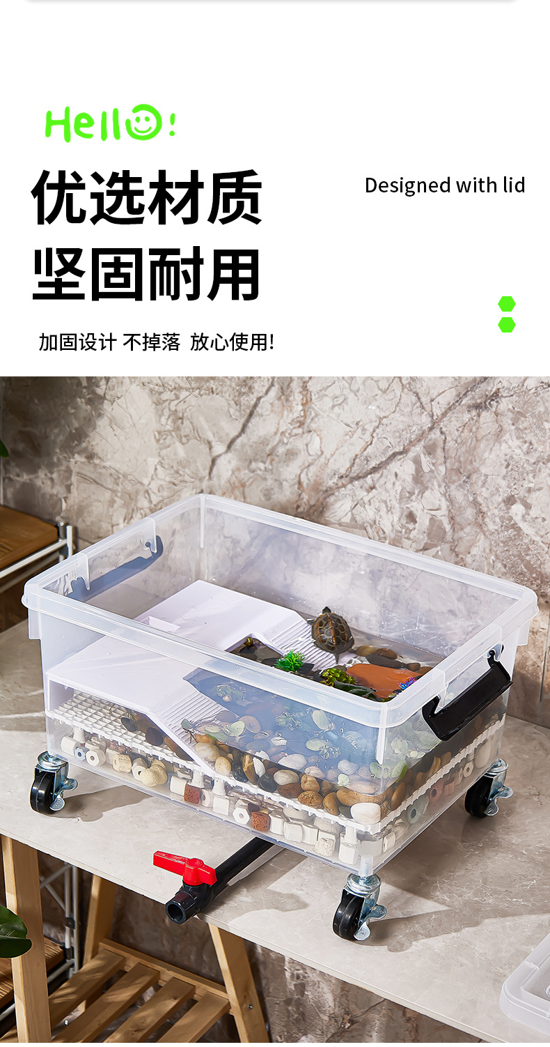 바닥에 배수구가 있는 거북이 사육조, 뚜껑이 있는 투명한 생태계 풀거북 특수 거북이 수조, 가정용 바닥 여과기, 물고기와 거북이 혼합 수조