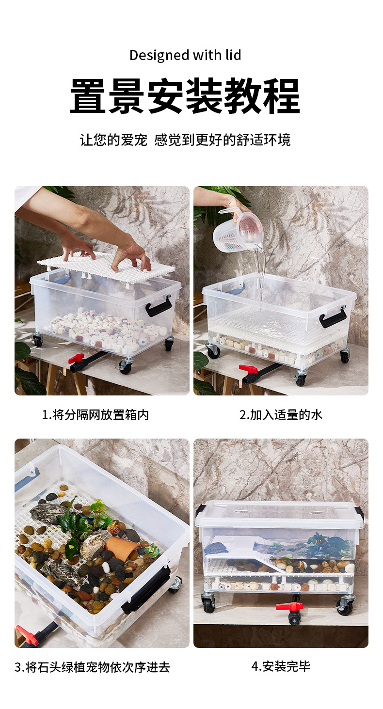 바닥에 배수구가 있는 거북이 사육조, 뚜껑이 있는 투명한 생태계 풀거북 특수 거북이 수조, 가정용 바닥 여과기, 물고기와 거북이 혼합 수조스토어 가기