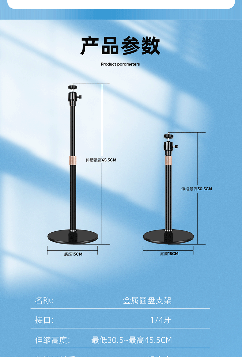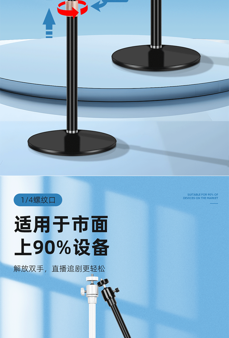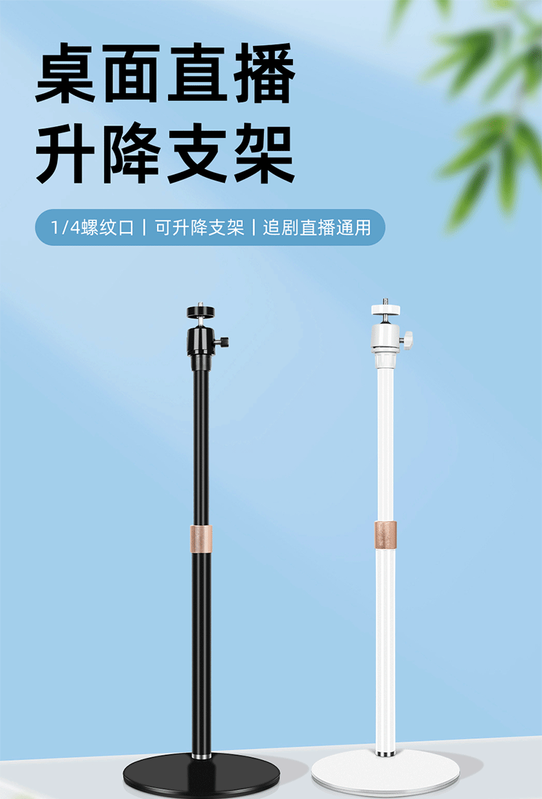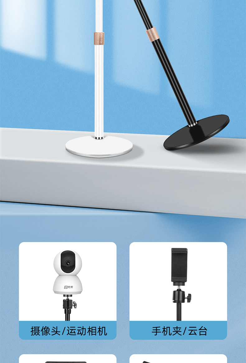 圆盘投影仪相机云台金属手机支架 桌面补光灯铝合金直播升降支架