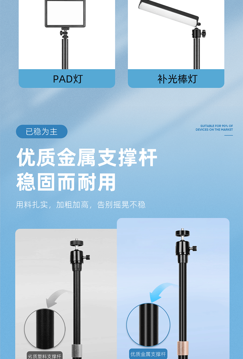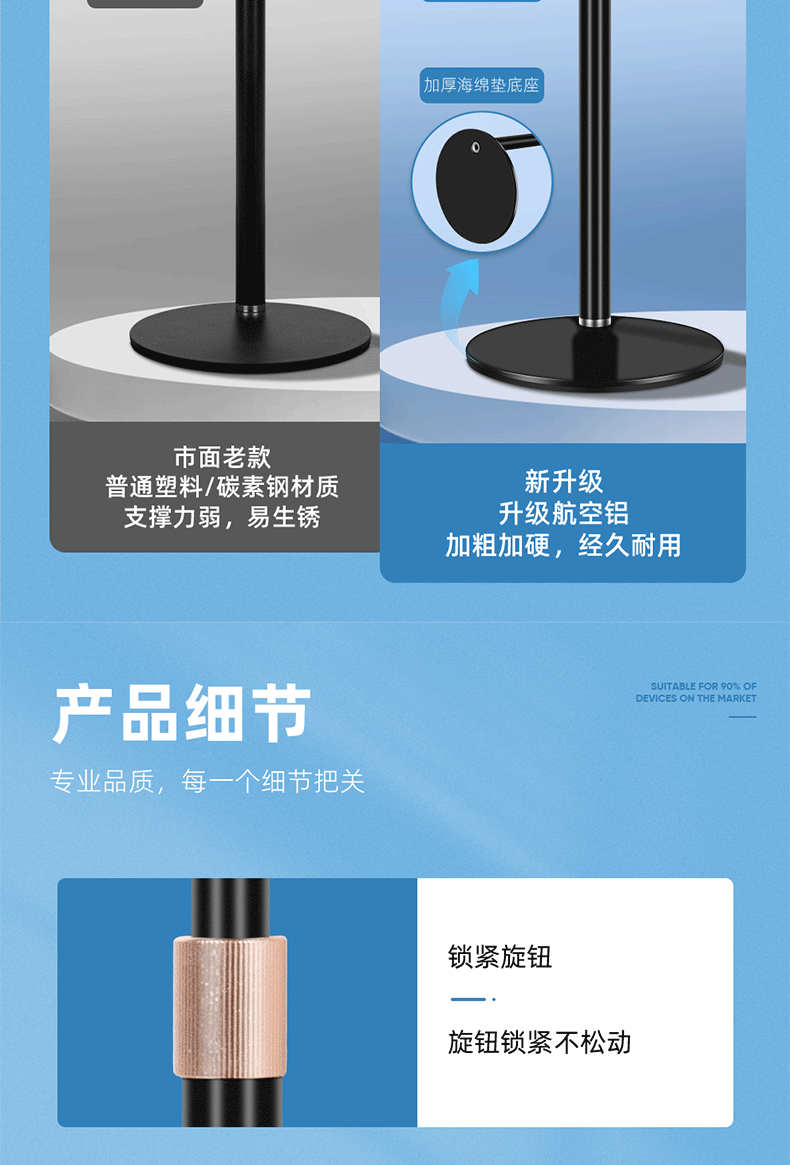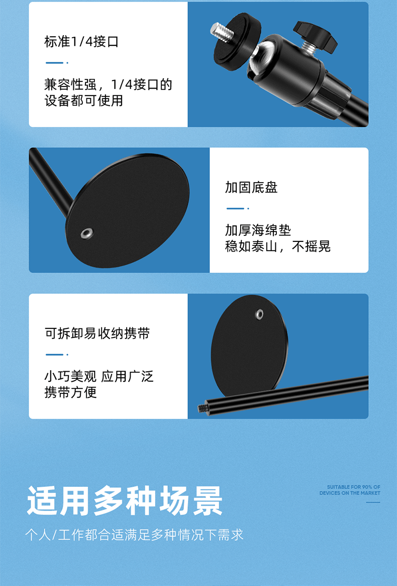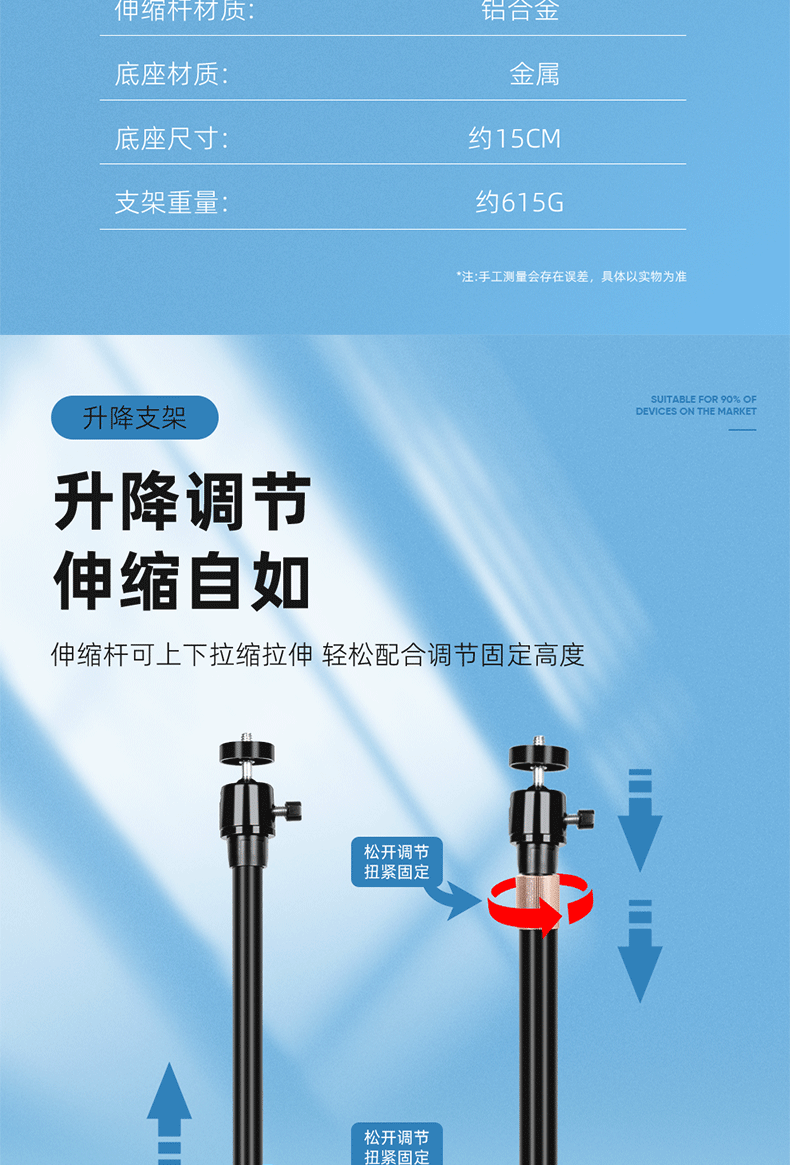 圆盘投影仪相机云台金属手机支架 桌面补光灯铝合金直播升降支架