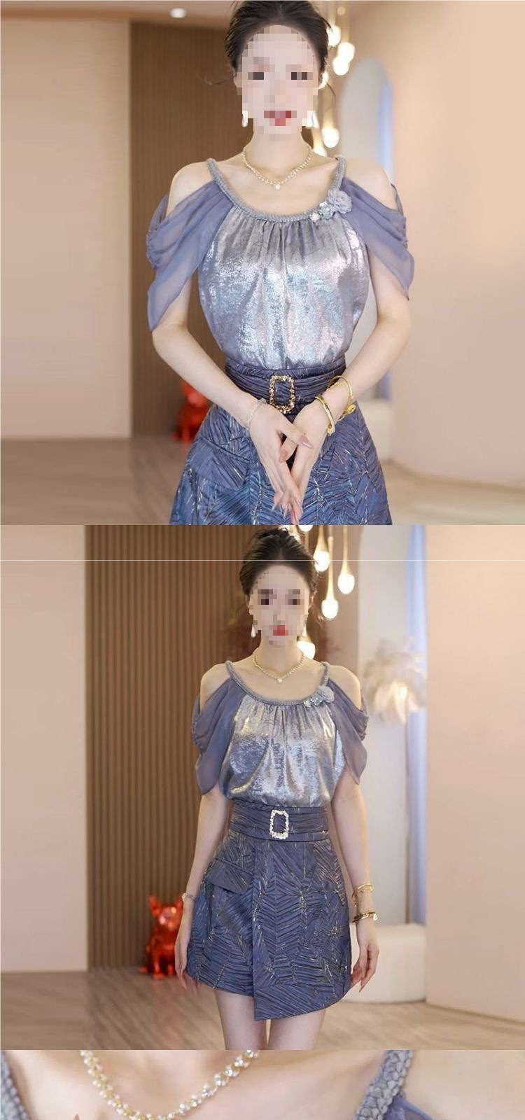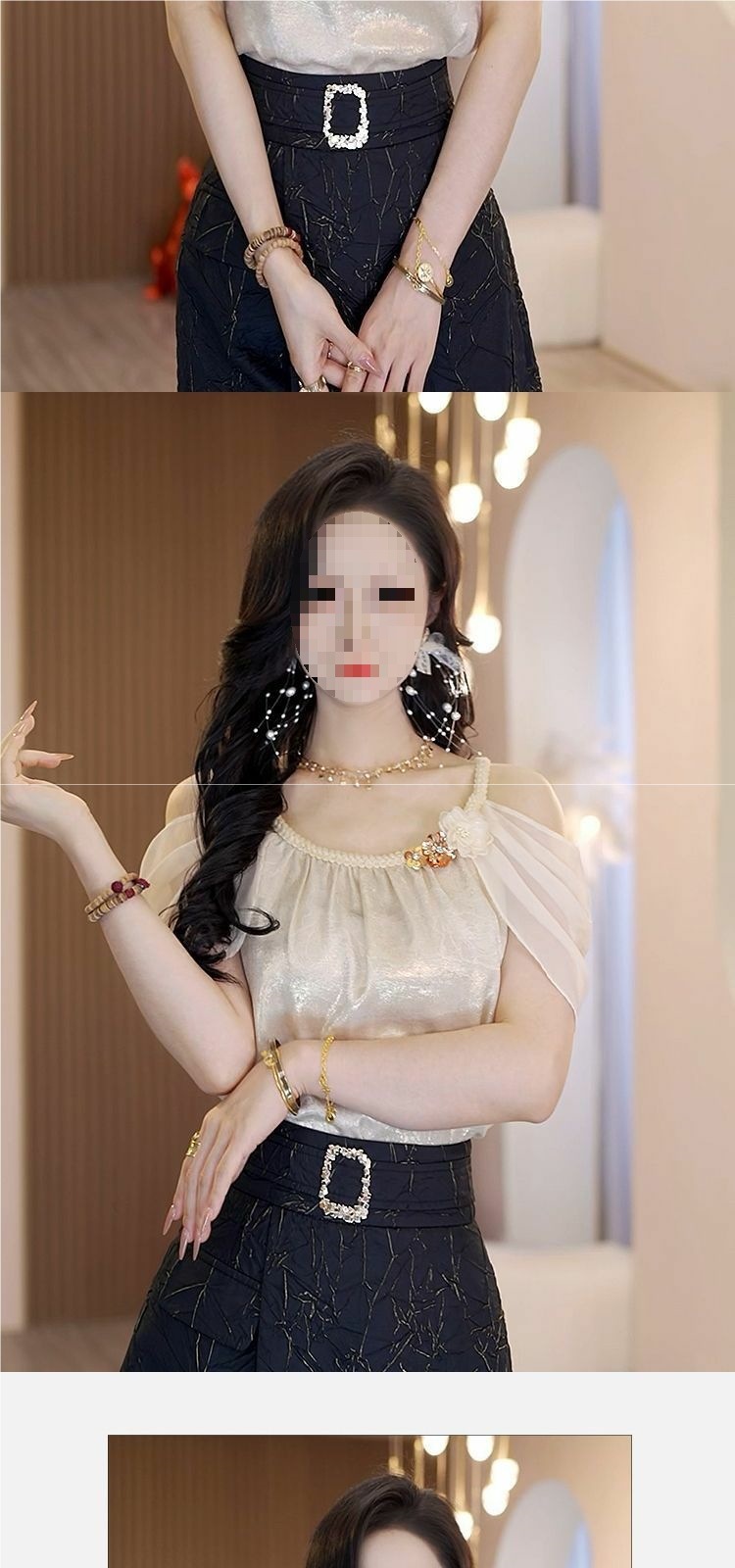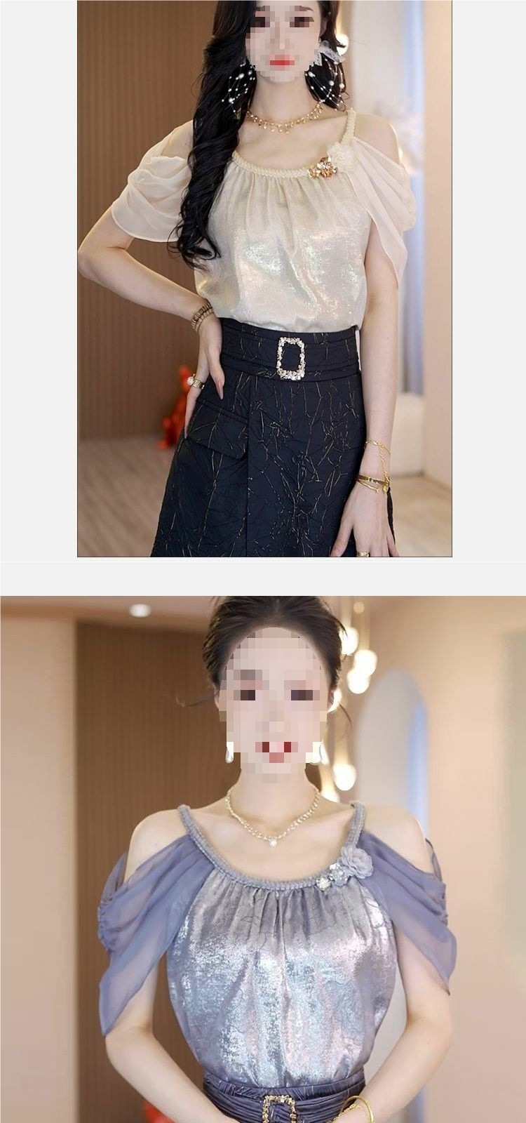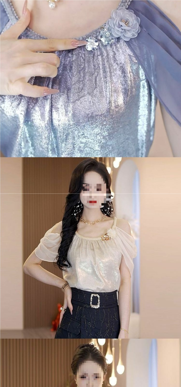 2025 신상 쉬폰 셔츠, 스플라이스 홀터넥 오프숄더 셔츠, 여성용 상의, 아름답고 유니크한 셔츠, 새틴 셔츠스토어 가기