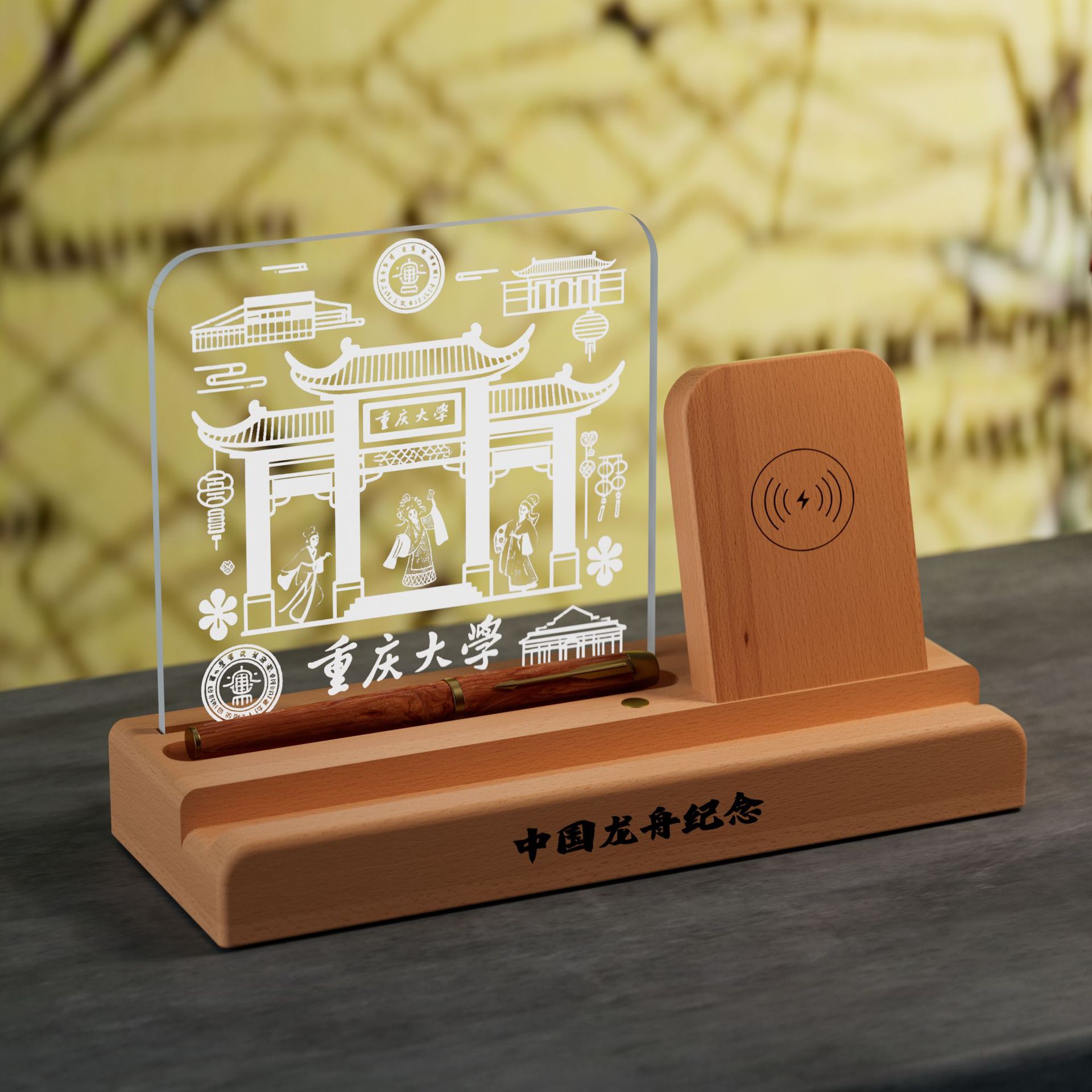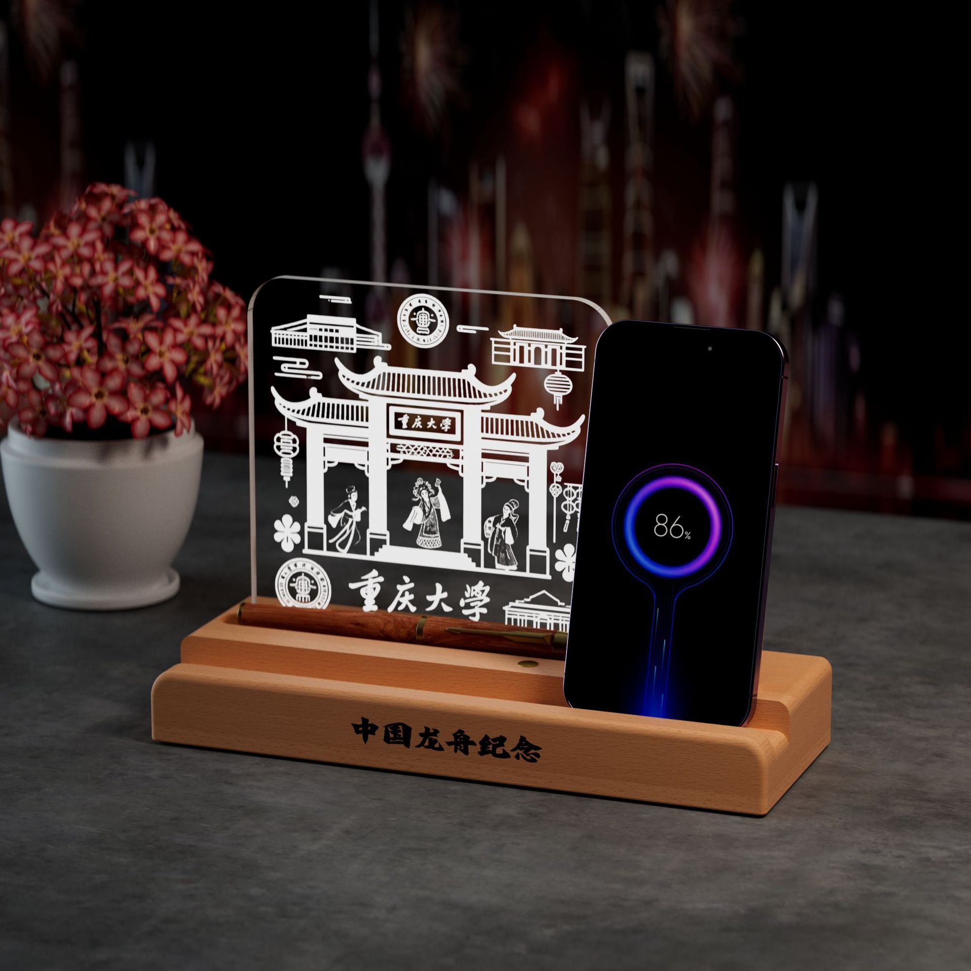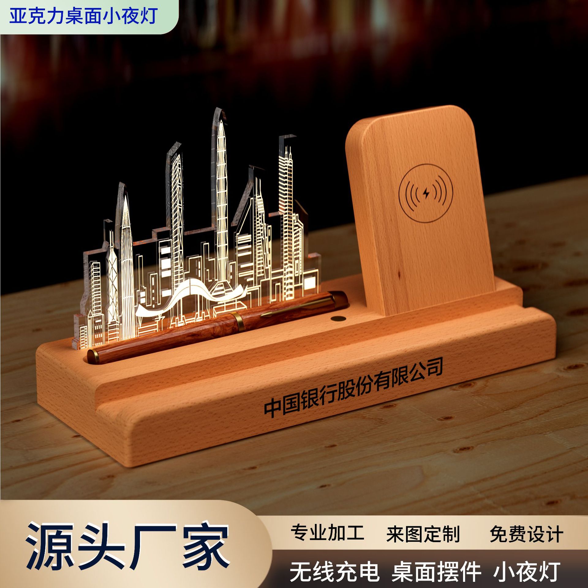 단단한 나무 15W 무선 충전기 기업 비즈니스 학교 이벤트 기념품 선물 아크릴 야간 조명 기념일 이벤트