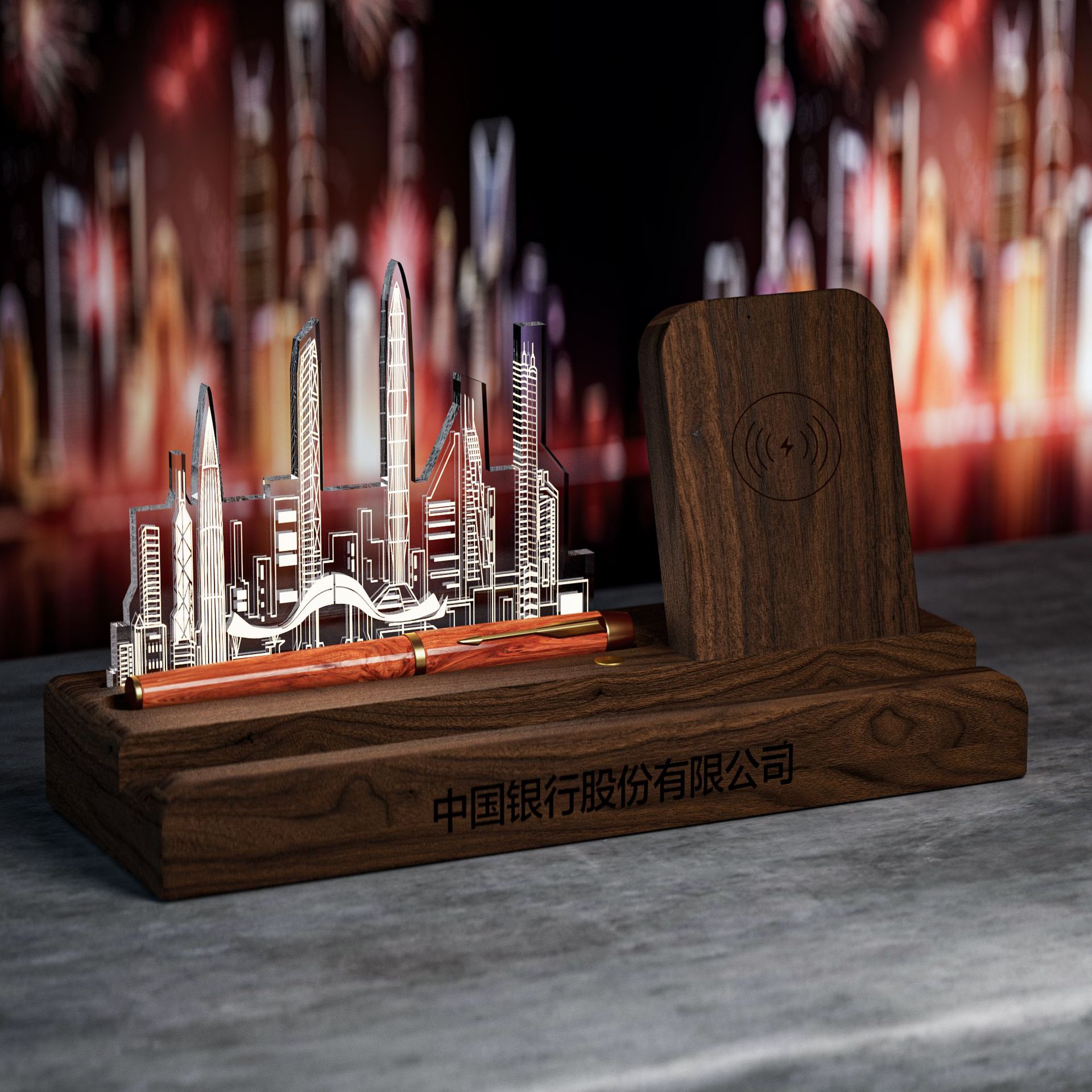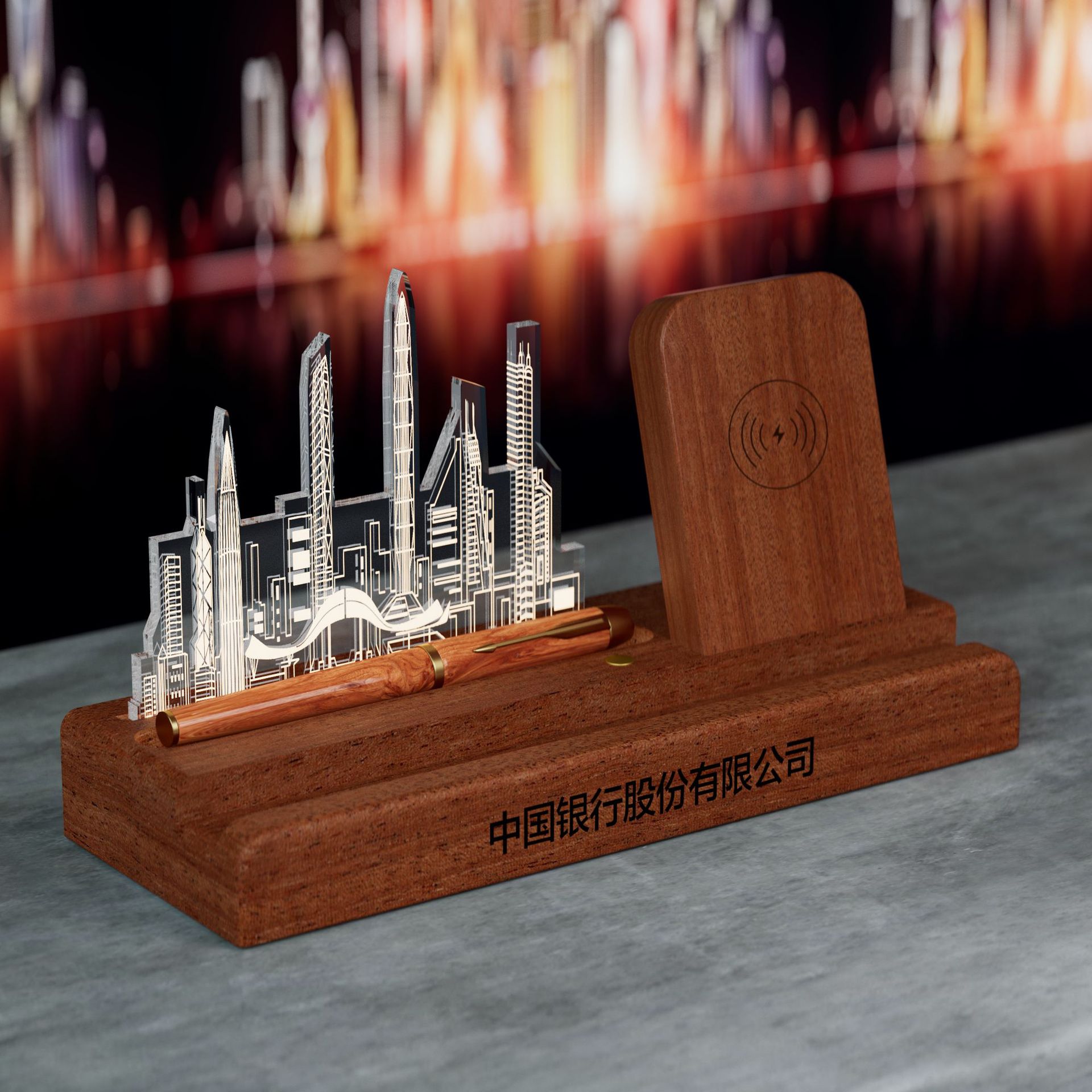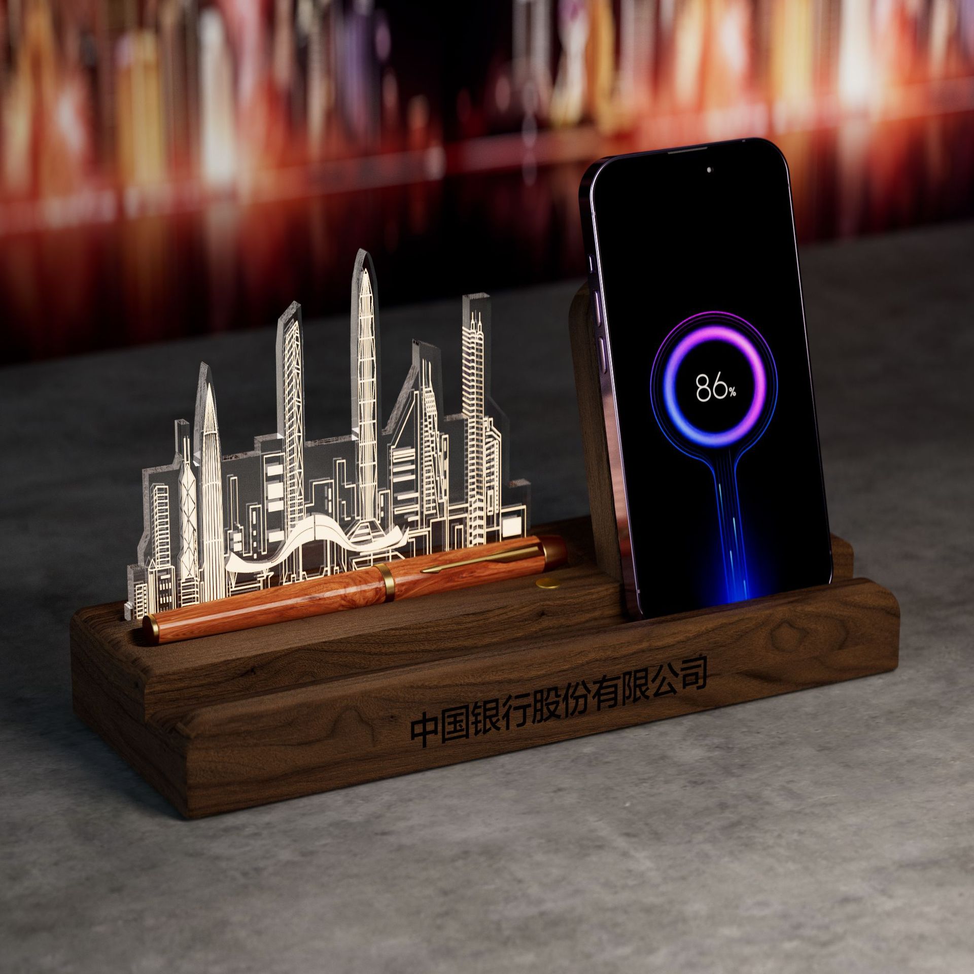 단단한 나무 15W 무선 충전기 기업 비즈니스 학교 이벤트 기념품 선물 아크릴 야간 조명 기념일 이벤트