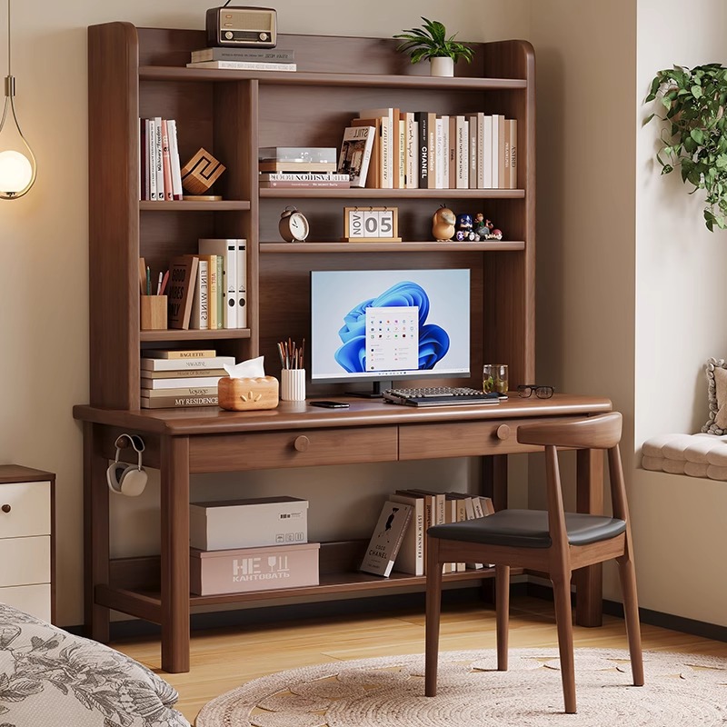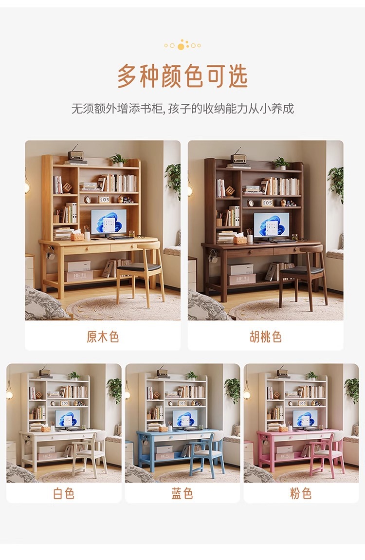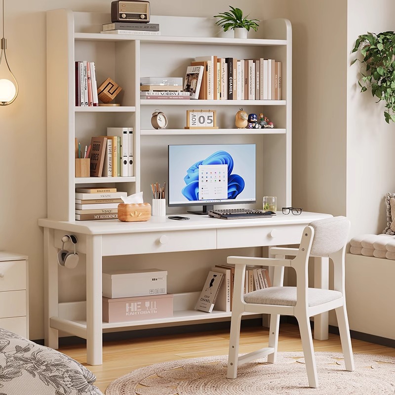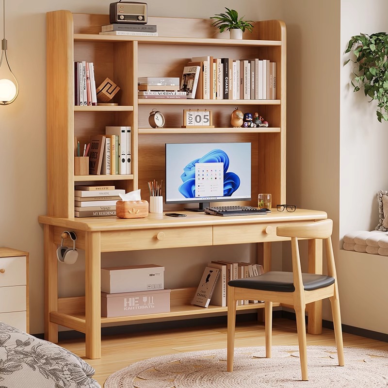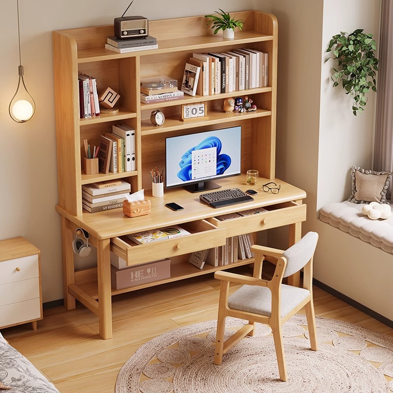 단단한 나무 책상과 책장이 통합된 소형 컴퓨터 책상, 간단한 침실 초중등 학생 책상, 가정 학습 책상