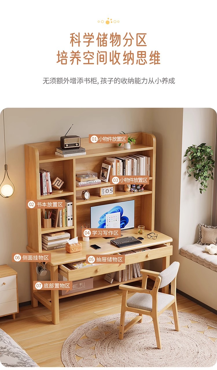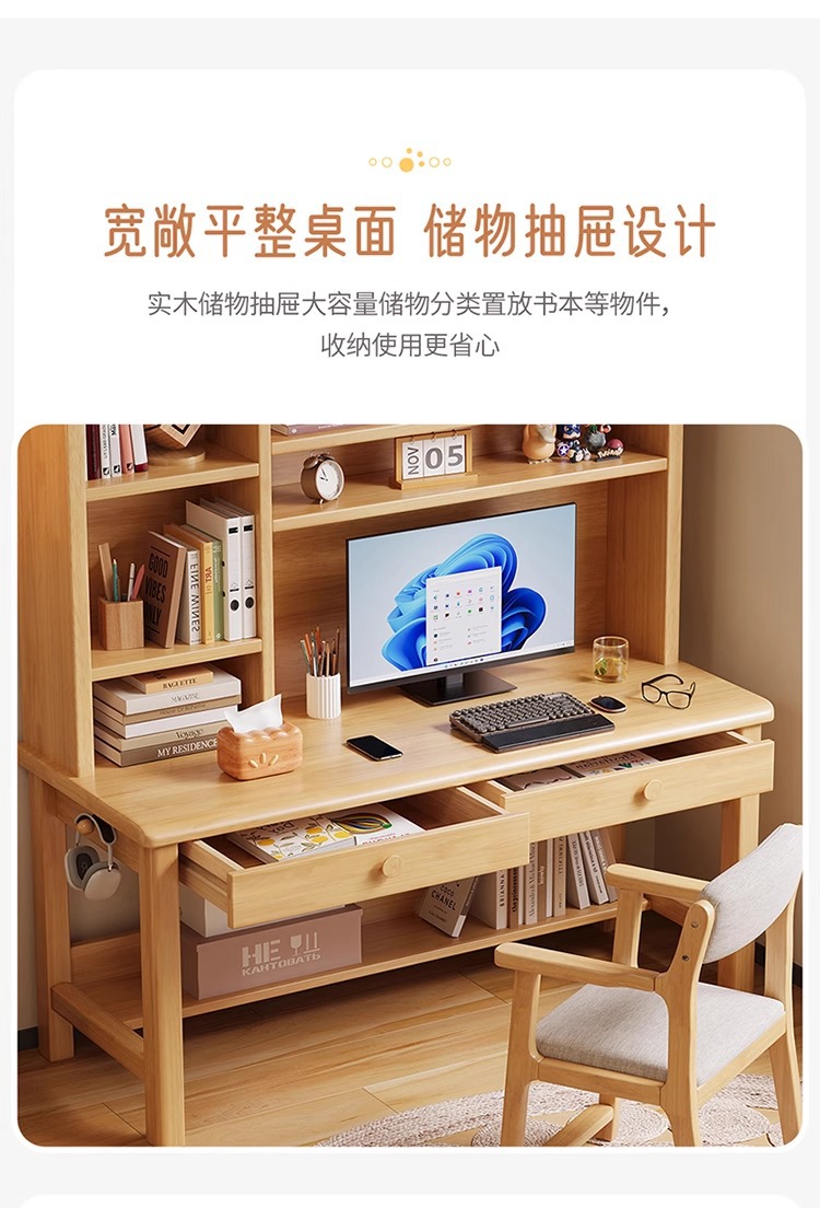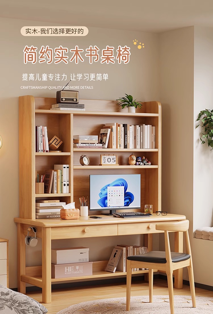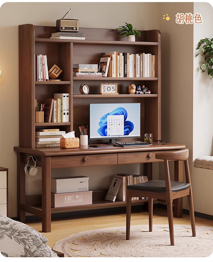 단단한 나무 책상과 책장이 통합된 소형 컴퓨터 책상, 간단한 침실 초중등 학생 책상, 가정 학습 책상