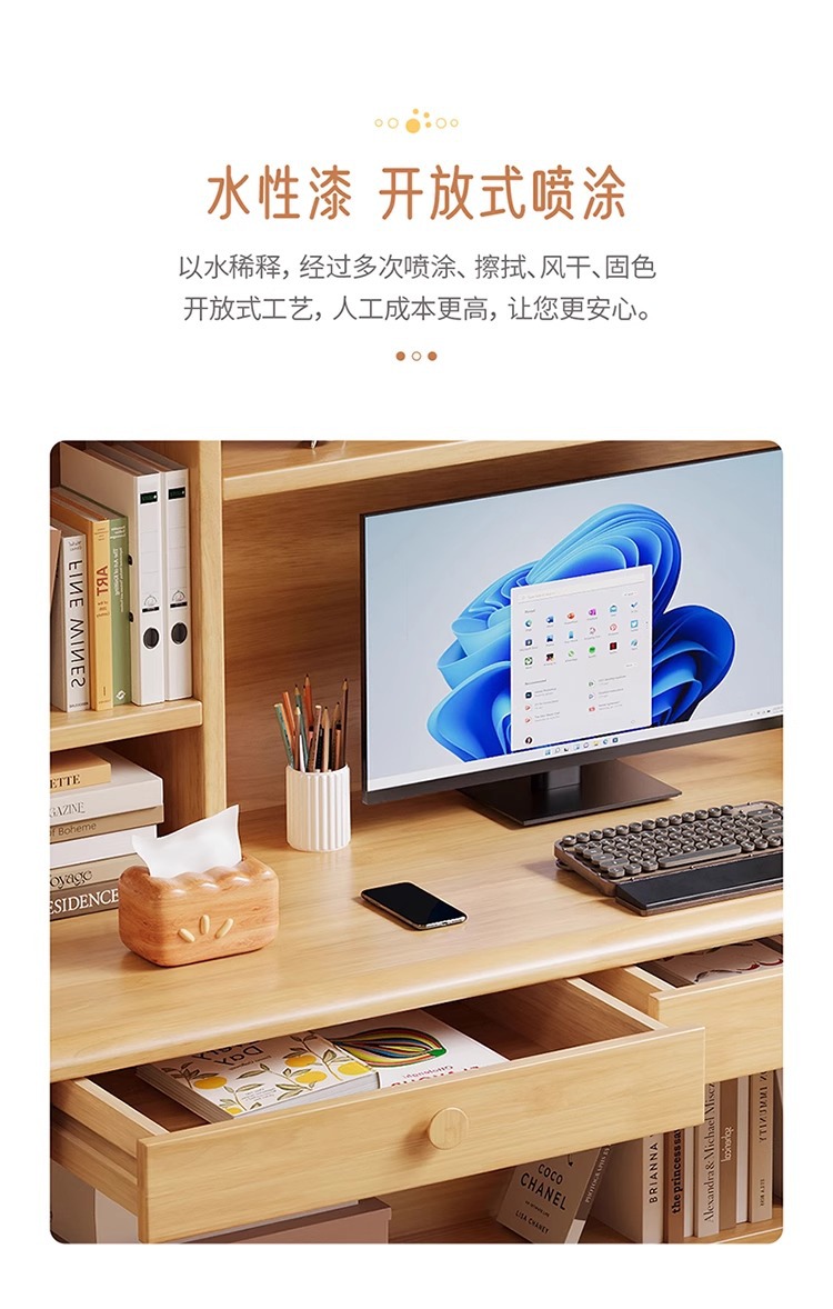 단단한 나무 책상과 책장이 통합된 소형 컴퓨터 책상, 간단한 침실 초중등 학생 책상, 가정 학습 책상스토어 가기
